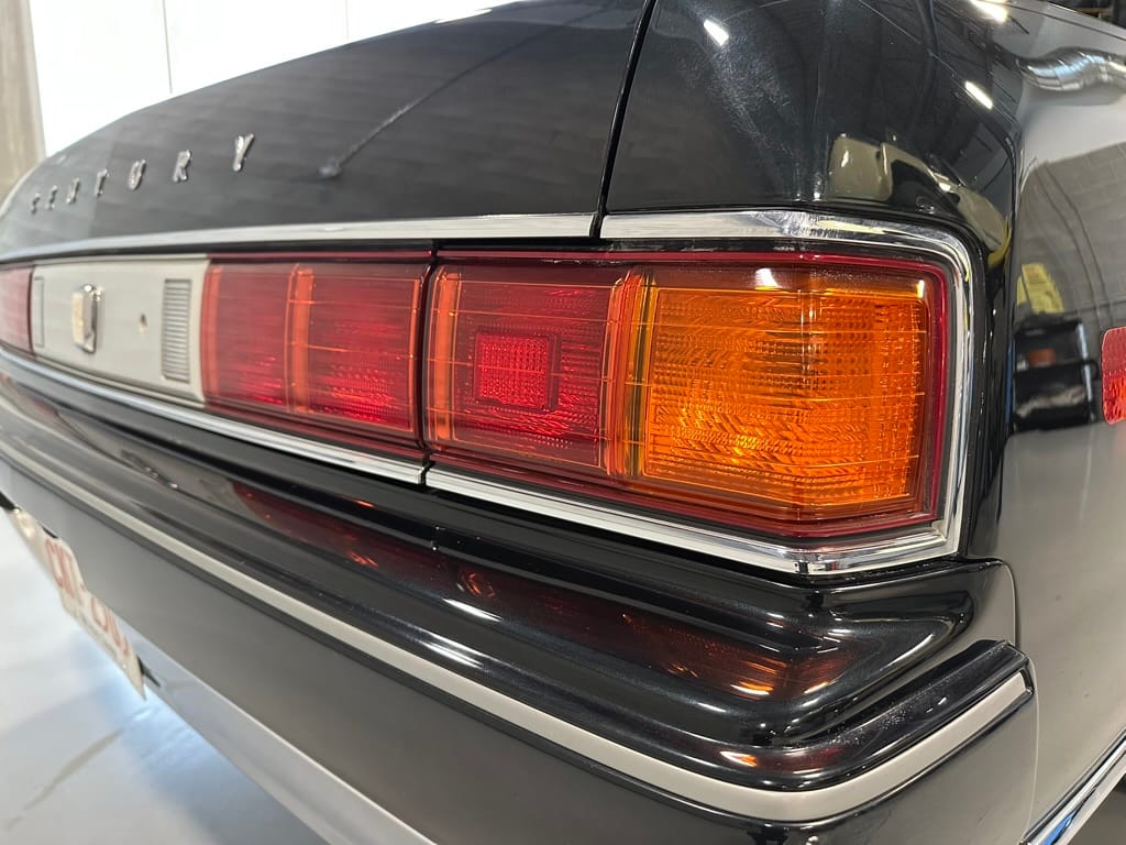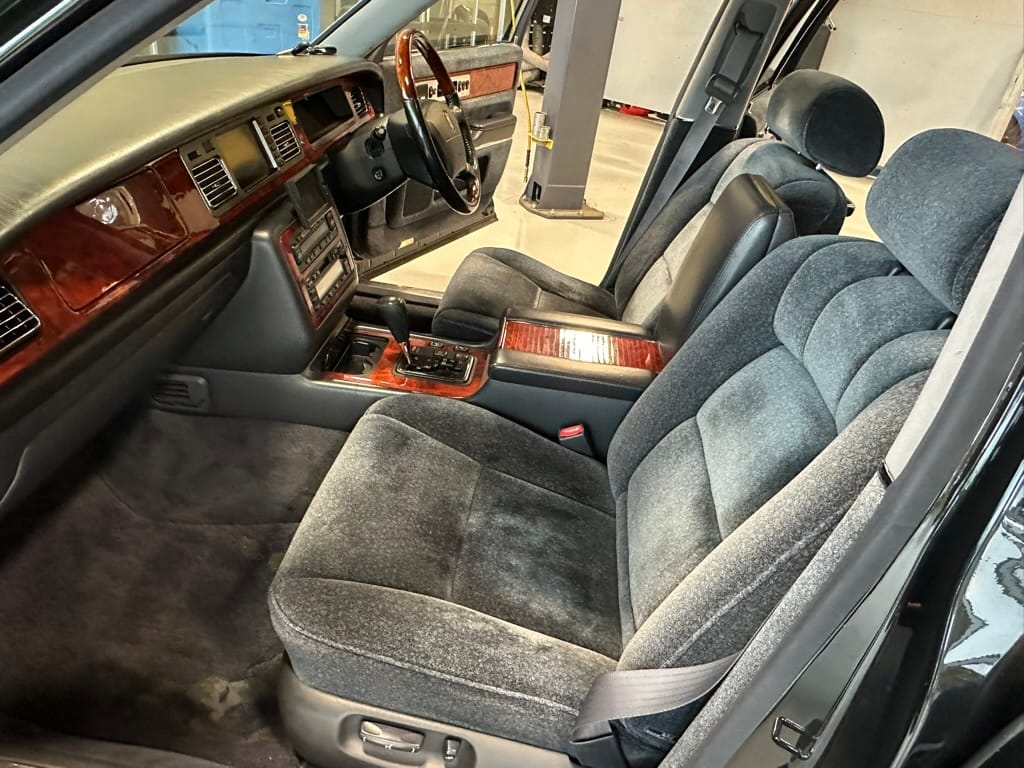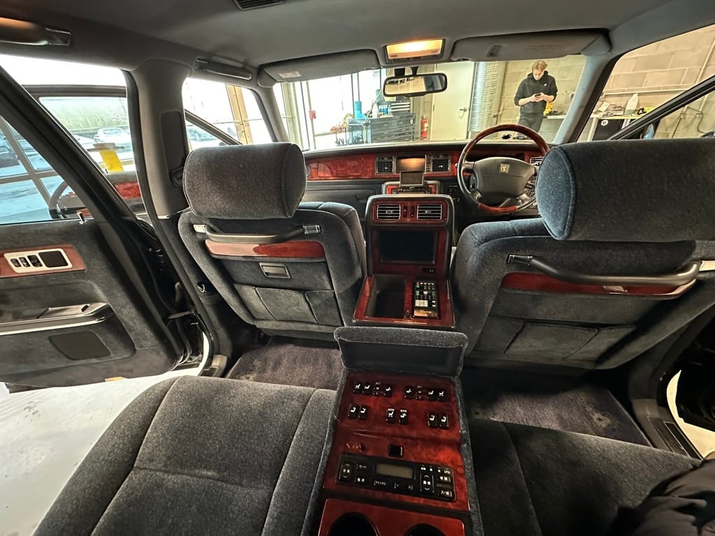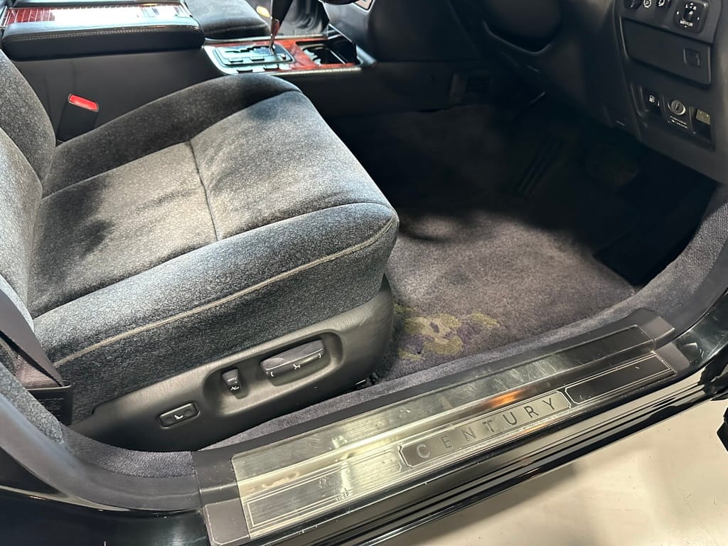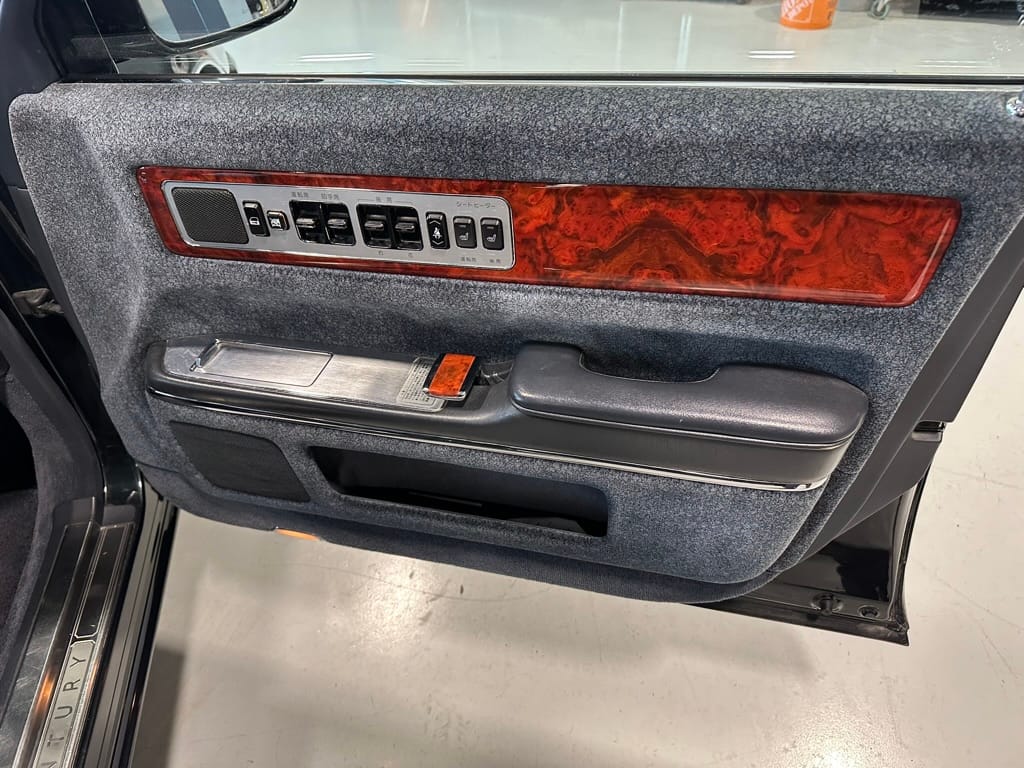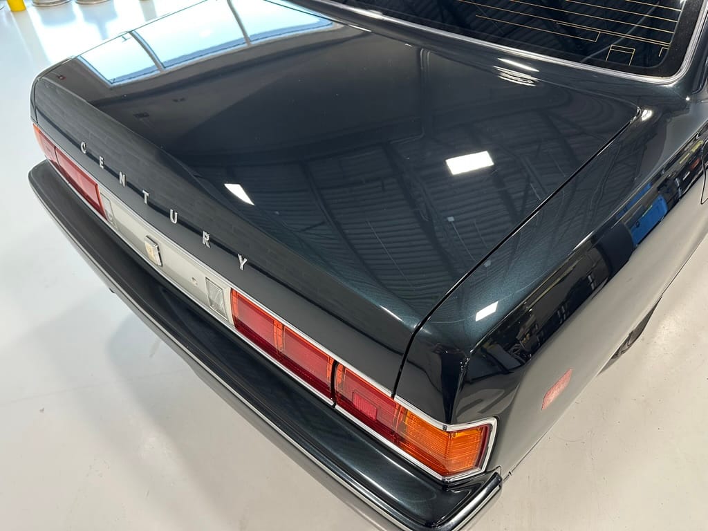 The overall presentation of this Century is excellent. It appears to wear mostly all original paint, though there has been some paint blown in on the tops of the front fenders where the Japanese spec wing mirrors were once mounted. Paint depth on both sides of the car, the bonnet and roof are in the 180micon range, and the trunk lid is in the low 200micron range (see YouTube video for detailed readings). There are a few marks on the front and rear bumpers, but all the body panels are dent and scratch free and show a mirror-like finish. The alloy wheels are un-curbed though show very light corrosion.