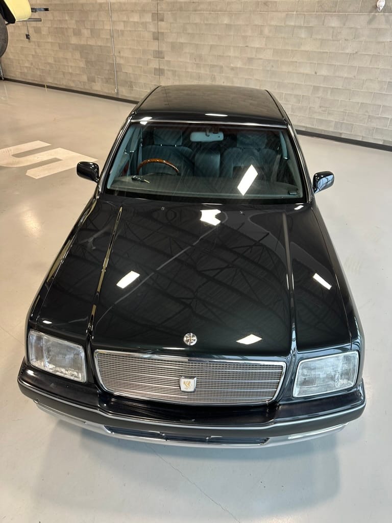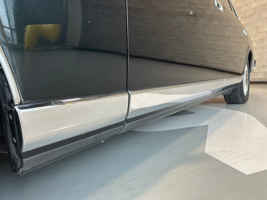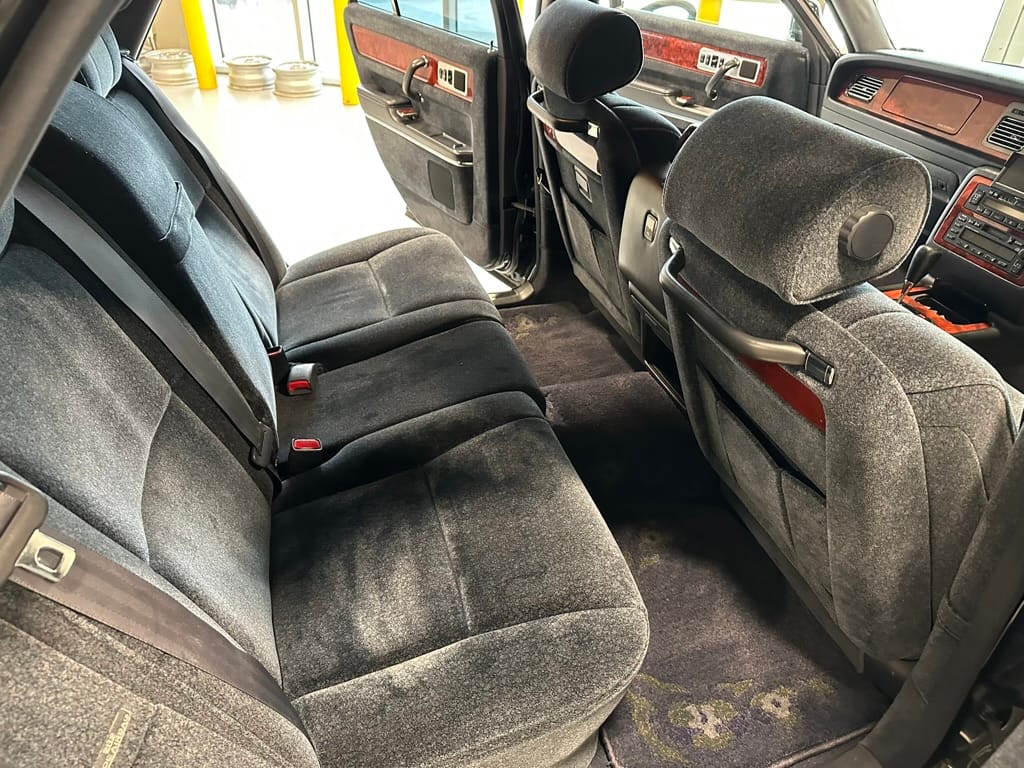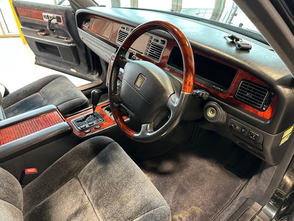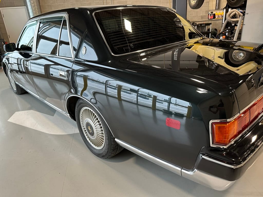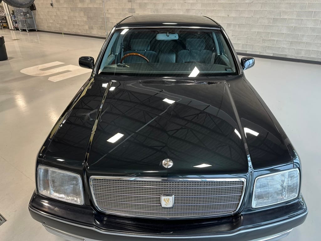 The overall presentation of this Century is excellent. It appears to wear mostly all original paint, though there has been some paint blown in on the tops of the front fenders where the Japanese spec wing mirrors were once mounted. Paint depth on both sides of the car, the bonnet and roof are in the 180micon range, and the trunk lid is in the low 200micron range (see YouTube video for detailed readings). There are a few marks on the front and rear bumpers, but all the body panels are dent and scratch free and show a mirror-like finish. The alloy wheels are un-curbed though show very light corrosion.