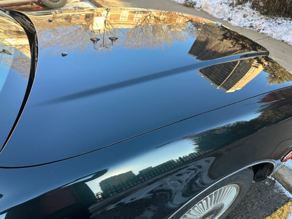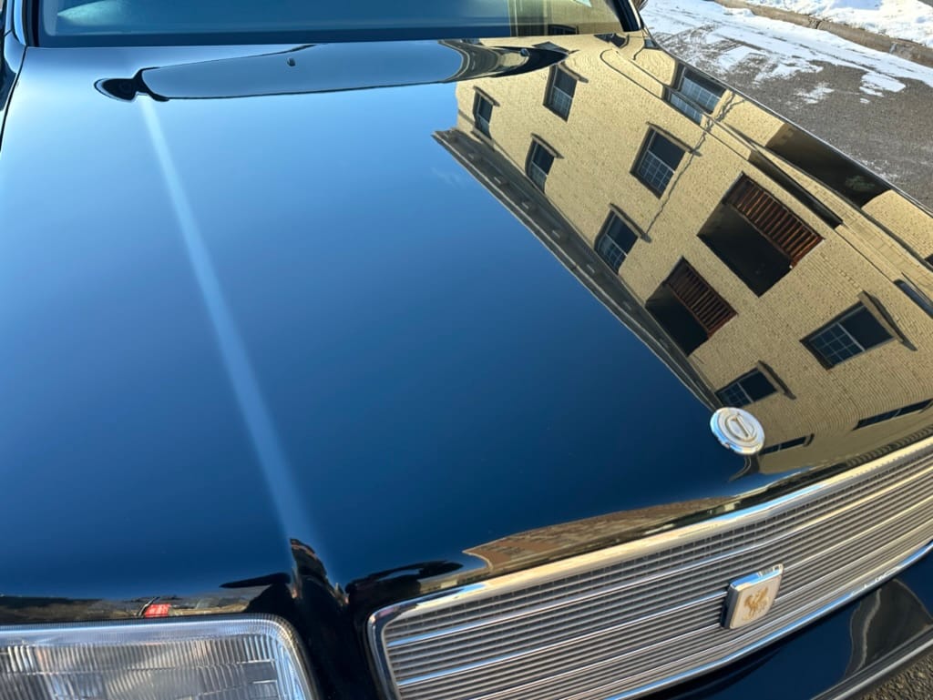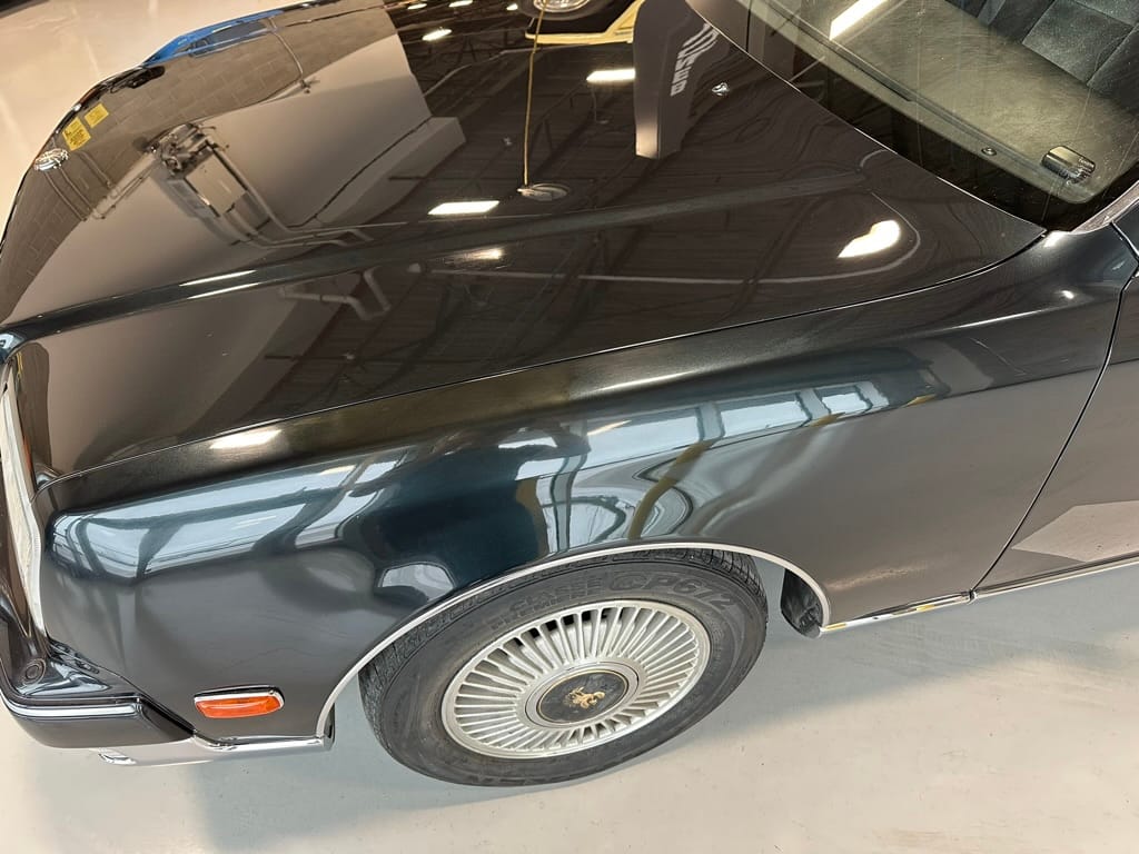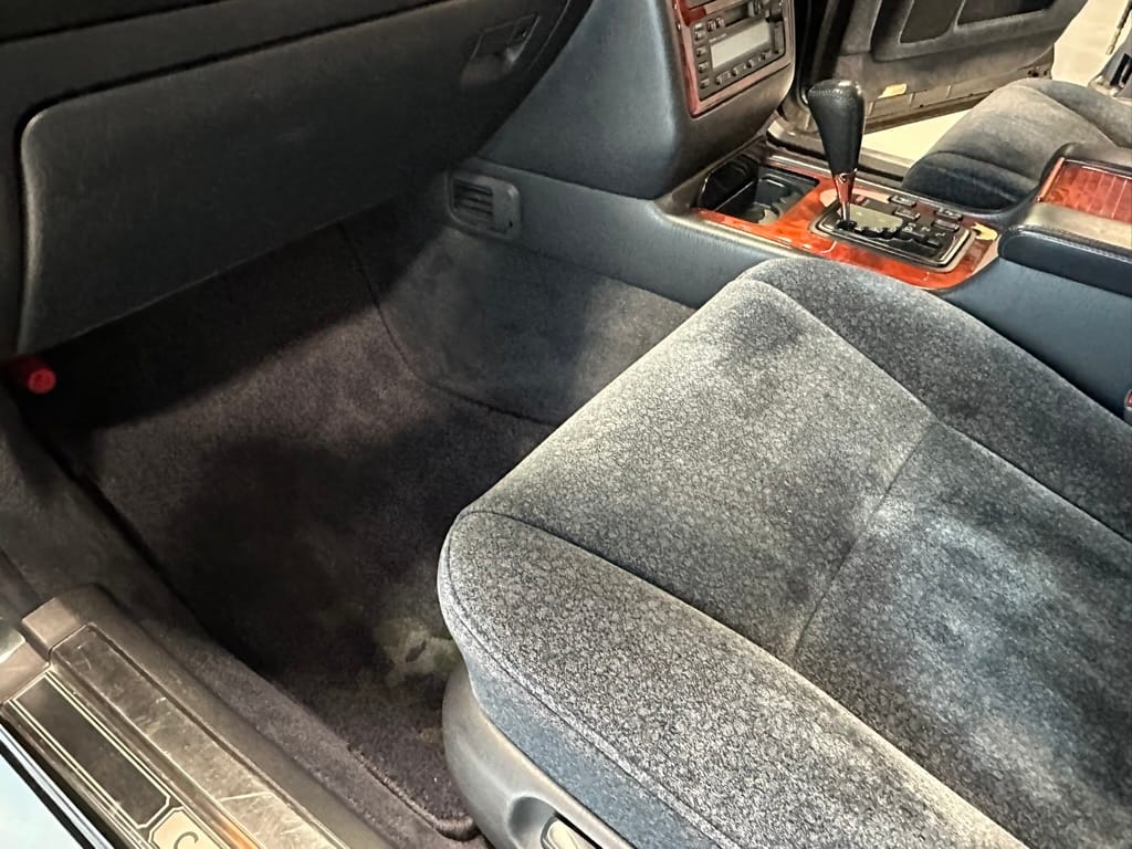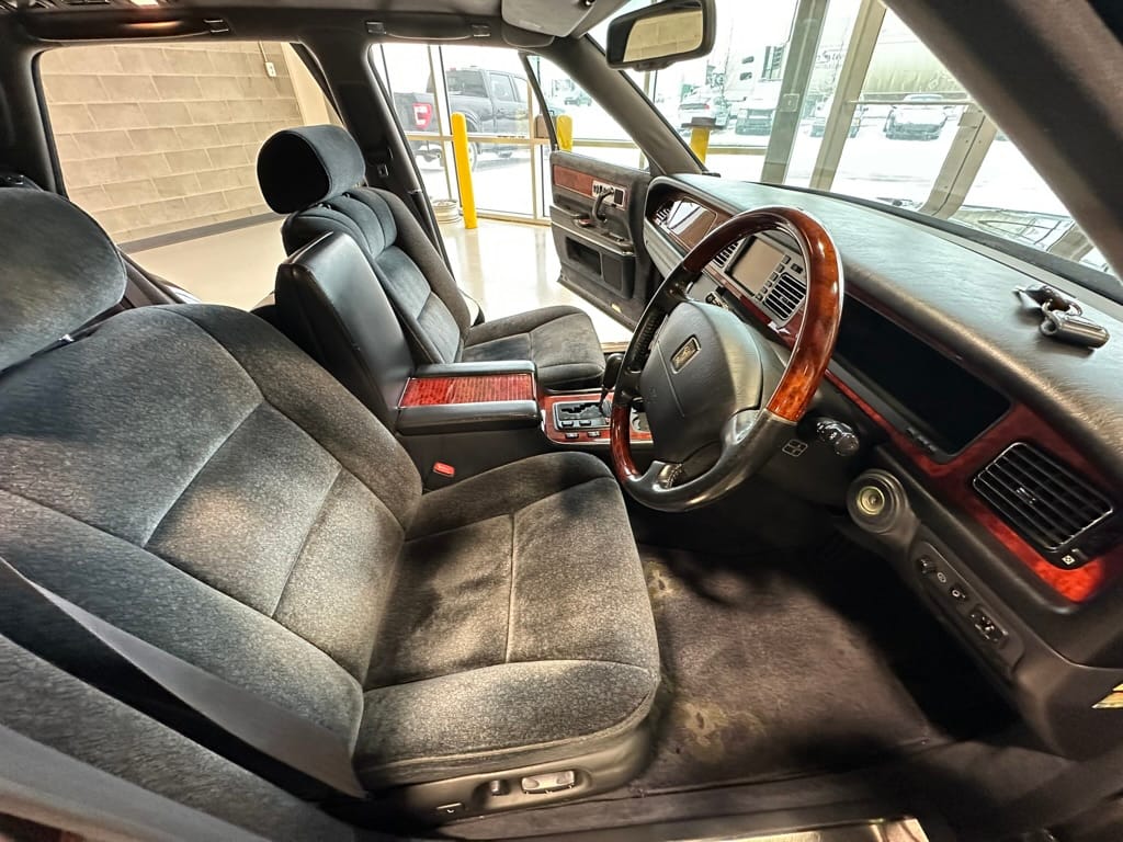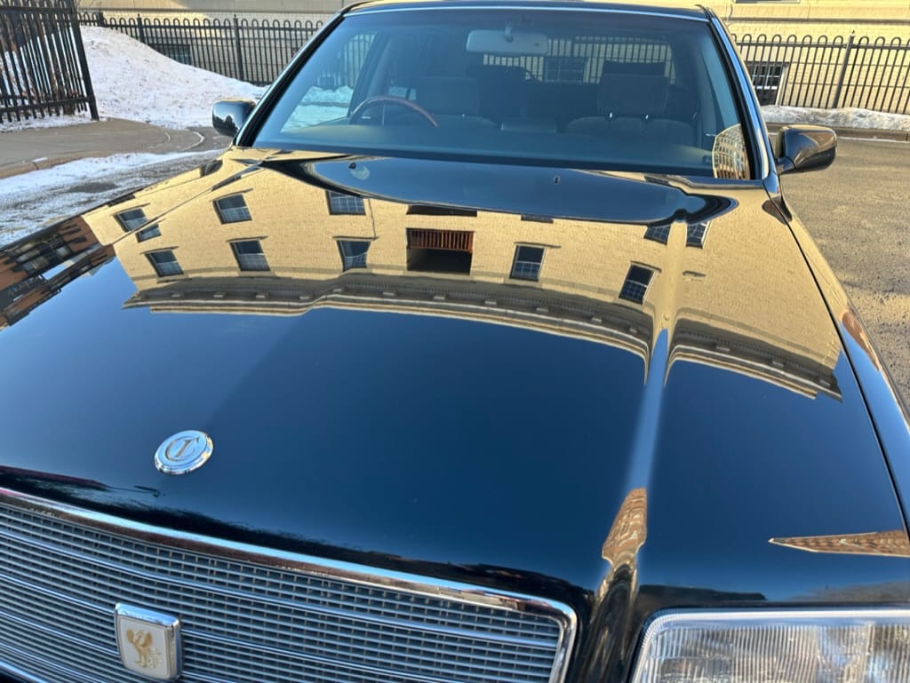 The overall presentation of this Century is excellent. It appears to wear mostly all original paint, though there has been some paint blown in on the tops of the front fenders where the Japanese spec wing mirrors were once mounted. Paint depth on both sides of the car, the bonnet and roof are in the 180micon range, and the trunk lid is in the low 200micron range (see YouTube video for detailed readings). There are a few marks on the front and rear bumpers, but all the body panels are dent and scratch free and show a mirror-like finish. The alloy wheels are un-curbed though show very light corrosion.
