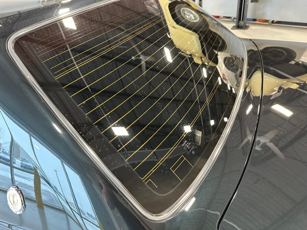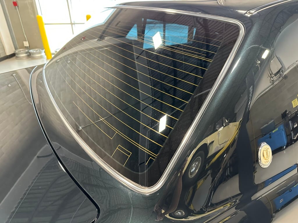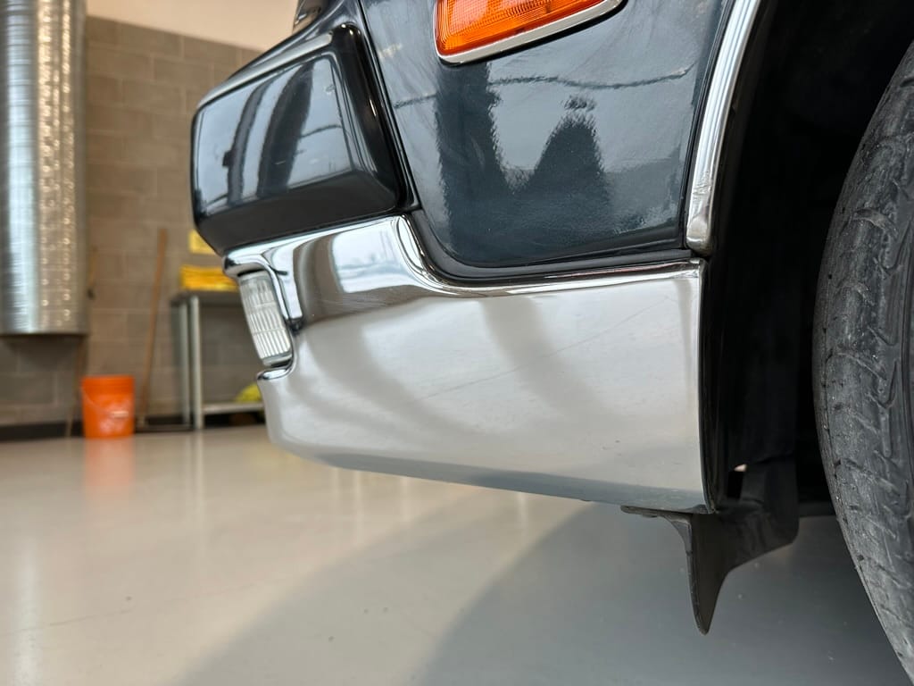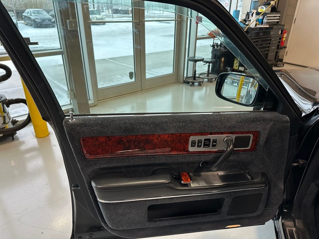 As the photos show, the car presents exceptionally well with only a few very small cosmetic defects on the bumper covers. The paint depth shows as original, apart from the areas on the tops of the fenders where new paint was blown in to cover the mounting points of the original fender mirrors which were relocated to the A Pillar. The interior is also in excellent shape with no rips, stains, or noticeable wear on the fabric, no cracking of the wood or missing interior pieces. A back up camera and screen was added by the previous owner, along with an LED reading light in the rear compartment. The car is otherwise stock.