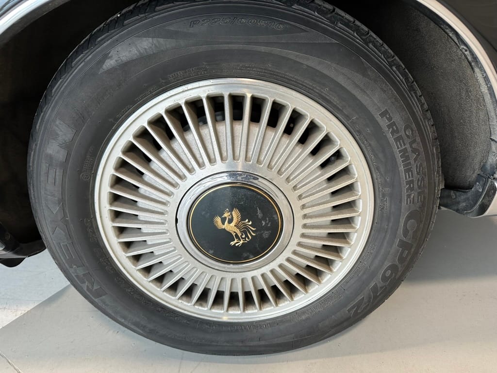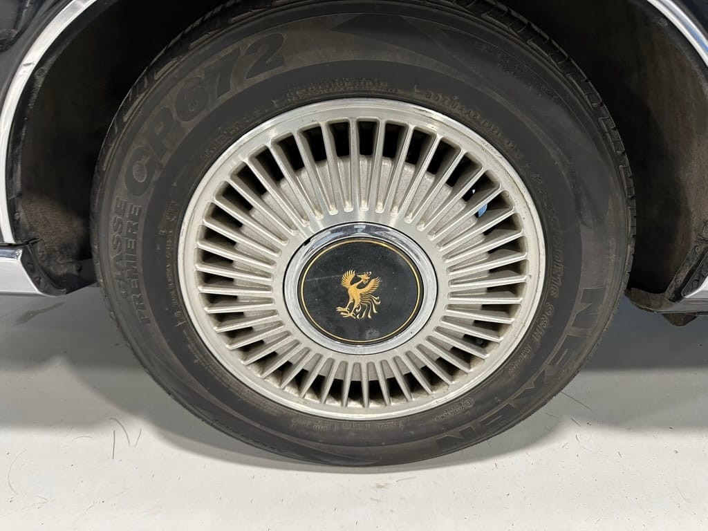 The Century rides on computer controlled air suspension with 'Skyhook' logic governing the damping functions. Self-levelling allows for the vehicle to maintain the correct attitude relative to the road. Tires are generous with their sidewalls (P225-70-16) have have a tread pattern optimized for quietness.