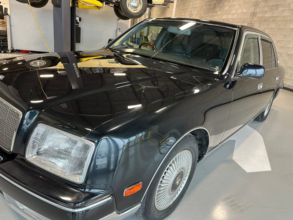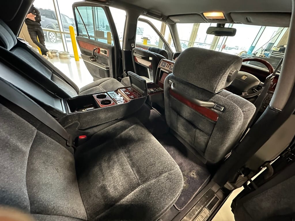 The records on this Century start with the JDM auction report at 167,400km where it was auctioned in Japan and imported into Canada. It received a Japanese auction grade of 3.5 with 'B' grade interior - a top grading for a vehicle with this mileage. It was first registered to a BC Lawyer in April 2023, and sold to Lawrence Romanosky in April 2024 with 176,412 km. An Out-Of-Province inspection was carried out by Henninger Toyota in May 2024 at 178,904km. Henninger replaced the front ball joints, tie rod ends, front lower control arms, rear brake rotors and pads, aligned the car, and replaced the hood struts at a cost of $3,952. Engine oil filter and air filters were replaced by the owner, and 10w30 oil was renewed as well as the wiper blades. In Dec 2024, at just over 180,000km, the car was given a $1,200 service including a transmission service (fluid and filter), a coolant flush and a new battery. The car was also treated to a 20 hour paint correction, 3-stage polish and wax.