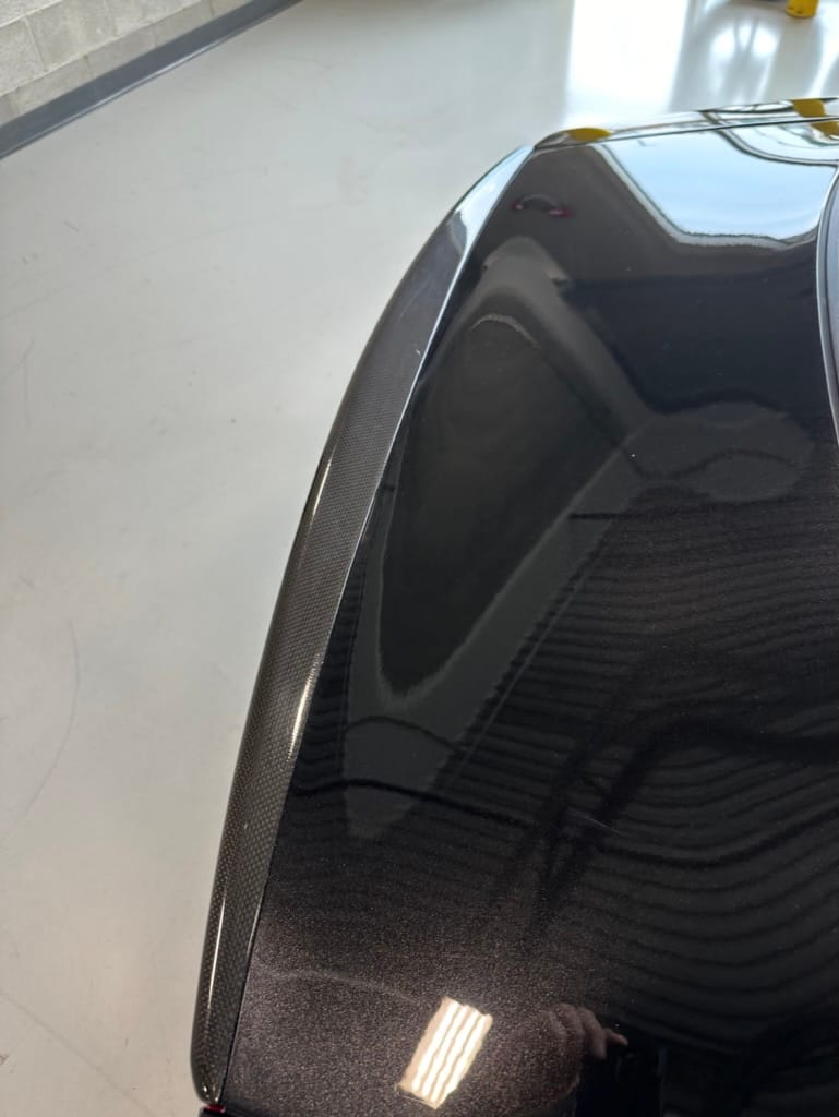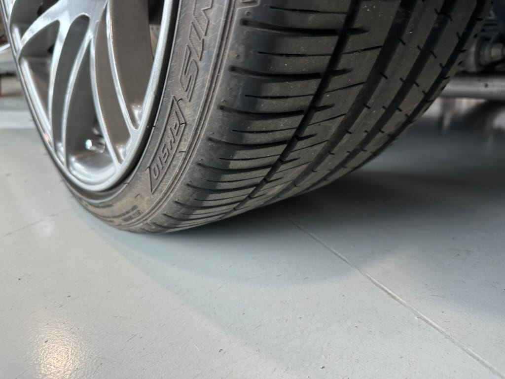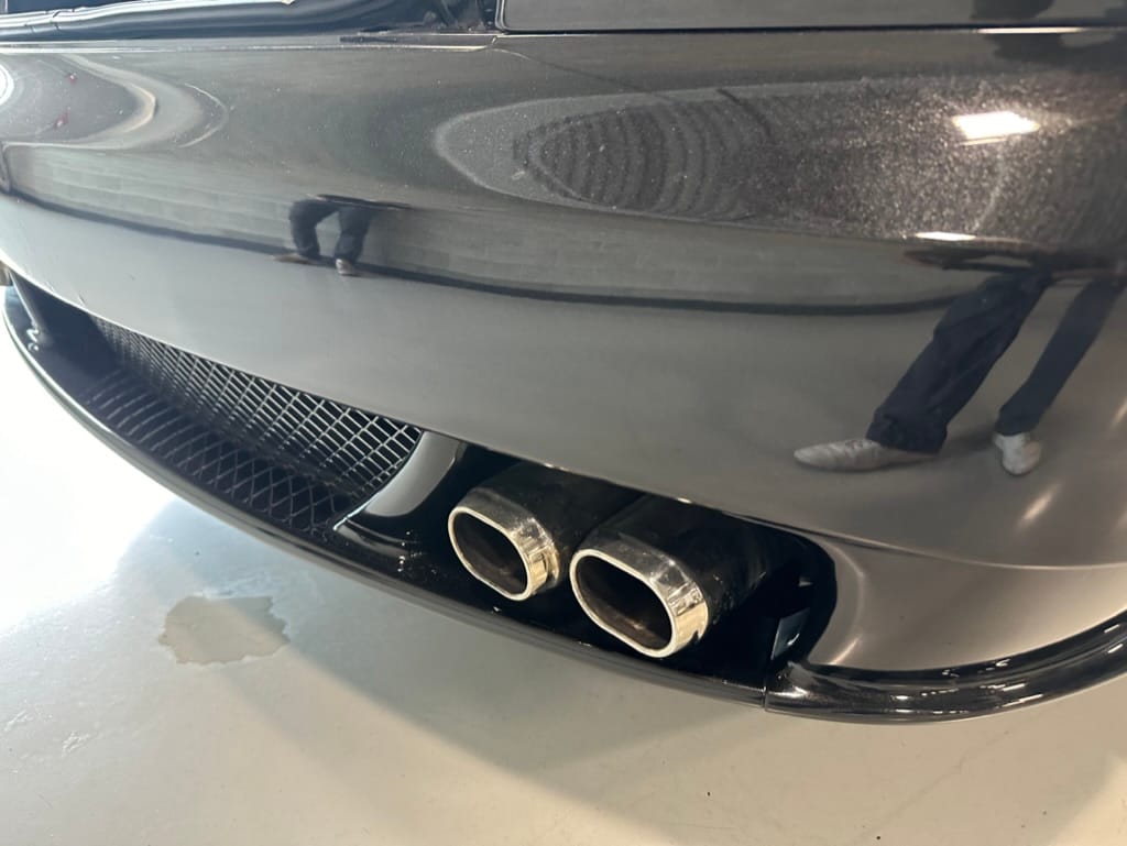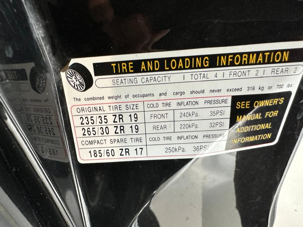 The suspension is made up of aluminum double wishbones on each corner with ’Skyhook’ programmed adjustable dampers. Formula Dynamics Wheels are 19” in diameter and wear 235-30-19 and 295-30-19 Genesis tires with more than 50% tread depth remaining. Brakes use 2 piece, radially vented and cross drilled rotors with red dual piston callipers. The rotors show minimal wear. A Larini Exhaust is installed.