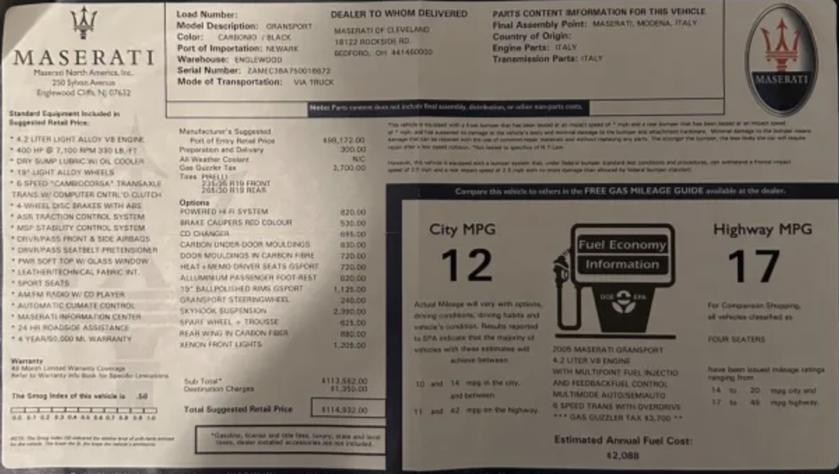 2005 Maserati M138 Grand Sport Cambiocorsa Coupe