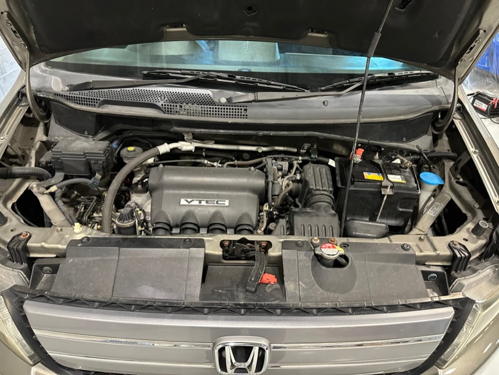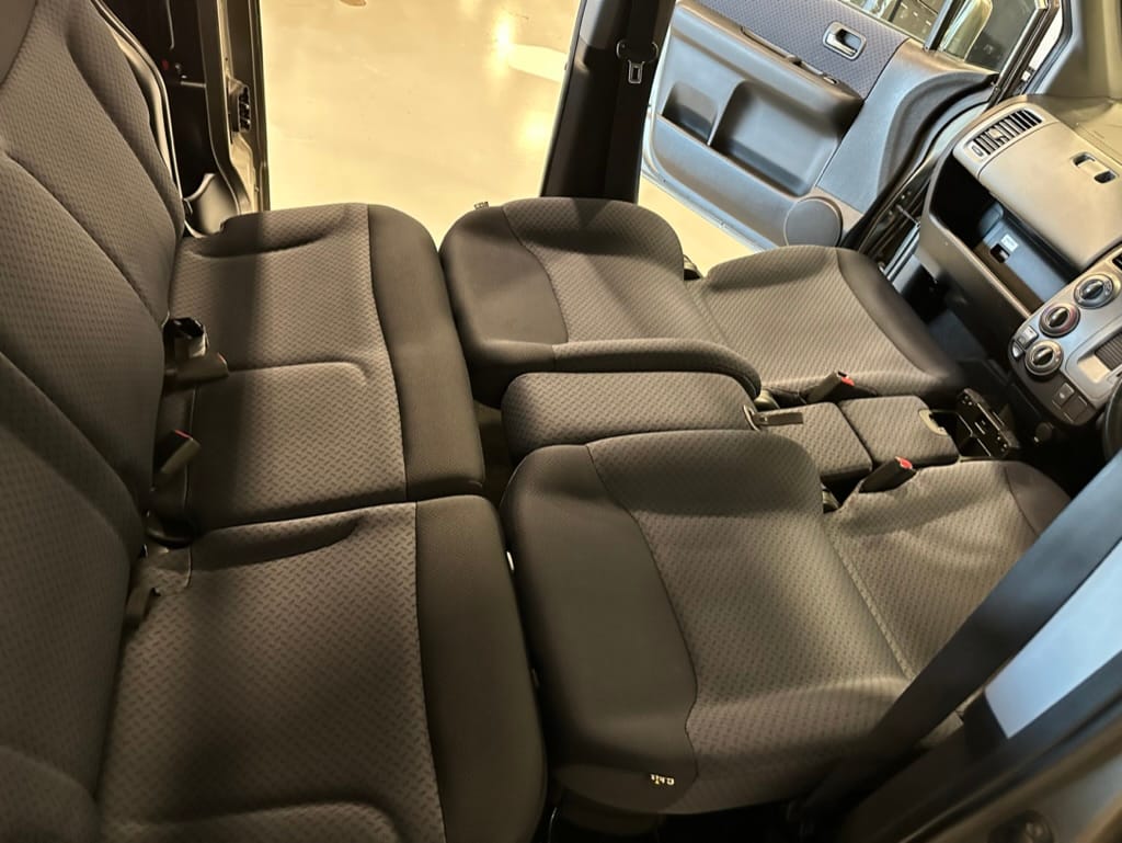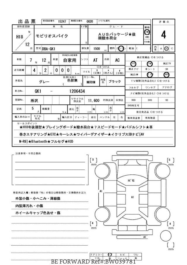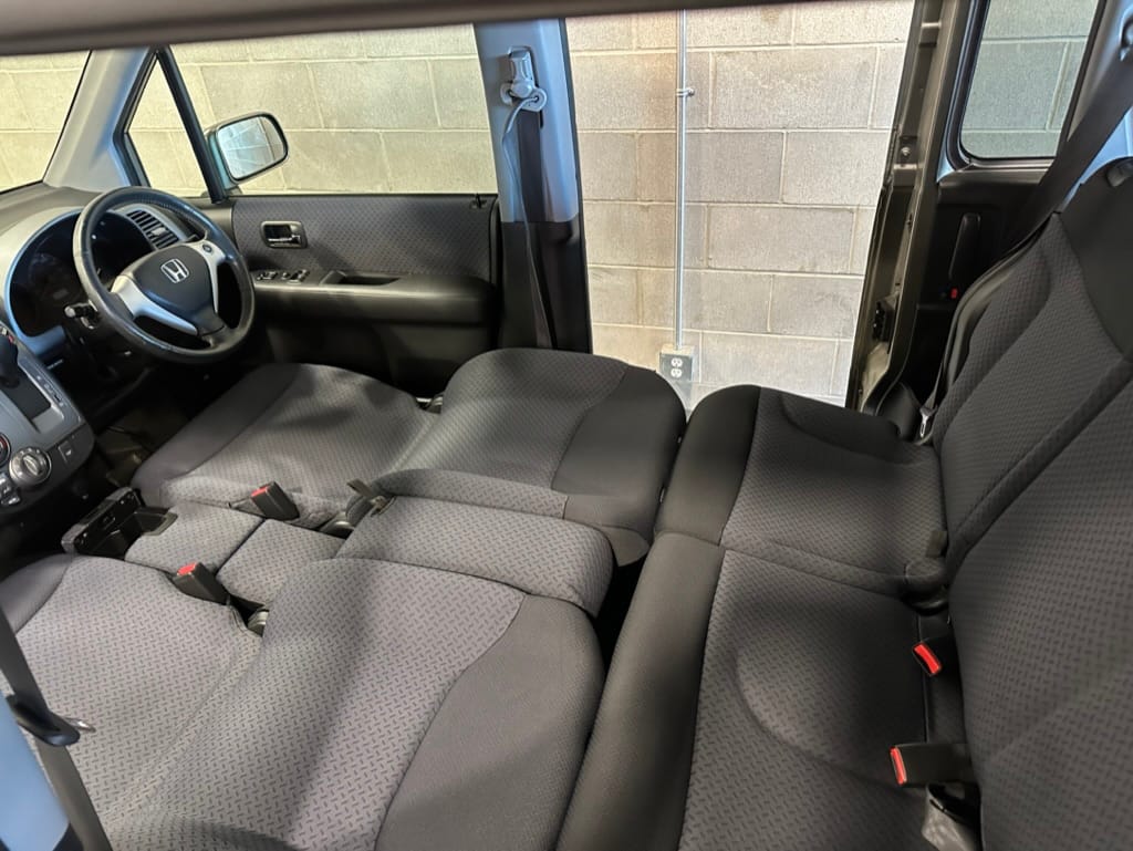This Mobilo Spike, #1206434, is an 'Auction Grade 4' vehicle which is a top rating for a vehicle with this year and mileage. Only some light scratching and a few 'A1' marks (the smallest grade) are noted on the very thorough Japanese auction report. This Mobilio Spike was upgraded with 16" alloy wheels (2015 Honda Fit) and Kuhmo Solus 4 Season tires. Oil service with Mobil 1 5w30 oil was just completed along with filter changes. The undercarriage is extremely clean, and the vehicle does not have a single rock chip.