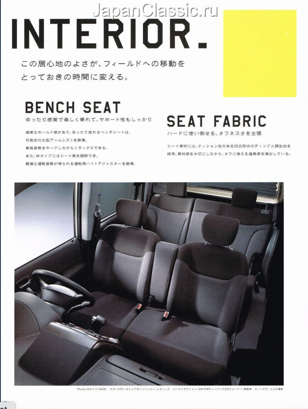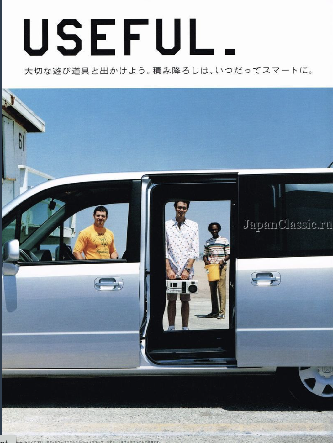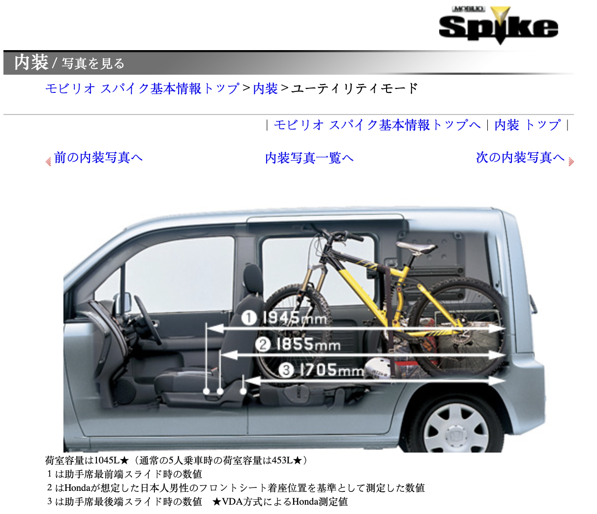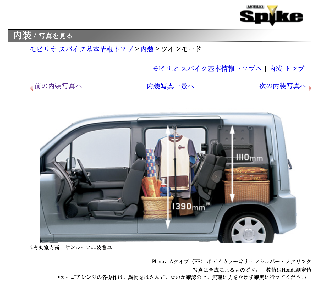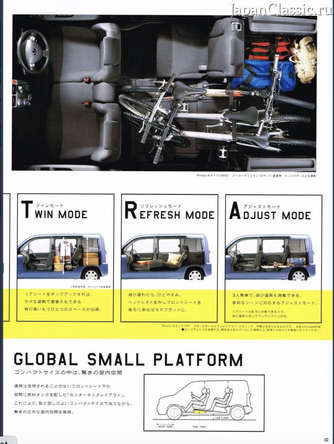 Translation from above: Mobilio Spike's Ultra Cargo that even has a sense of playfulness. A variety of arrangments can be easily and flexibly made according to the play scene. Moreover, the size of the cargo compartment base is at the top level of the class, whether it is in the rear seat storage or in use. It's also good to load a lot of play equipment and go out with your lover [not a lot of private space in Japan! - LR).
