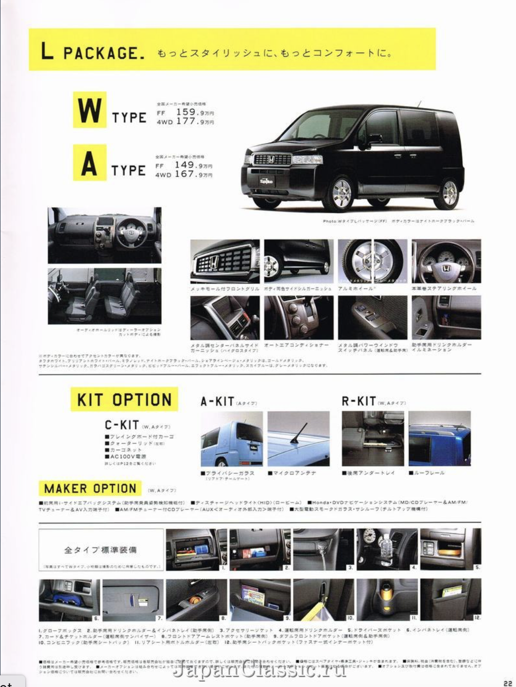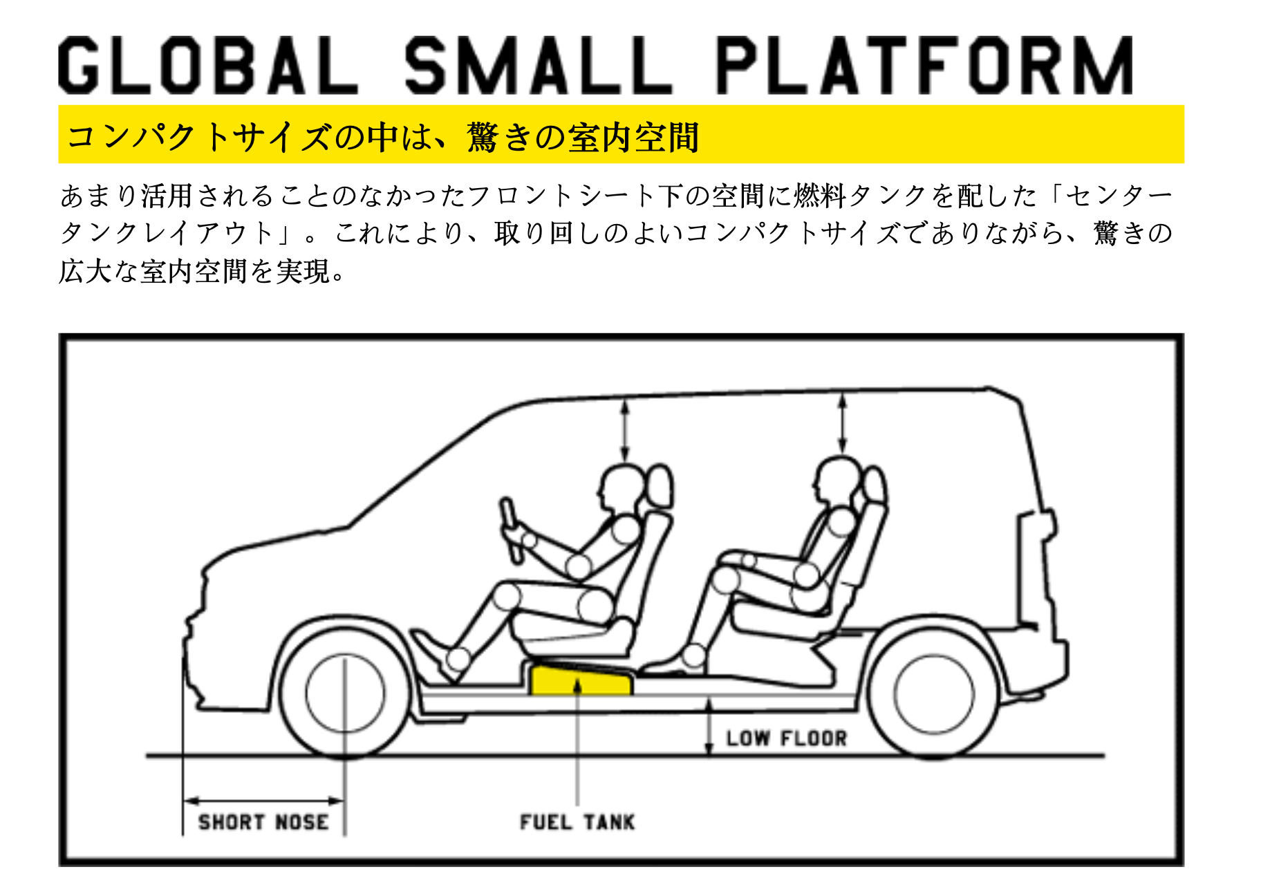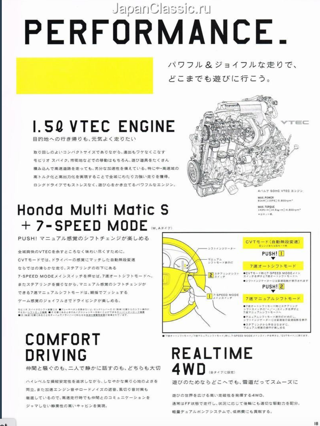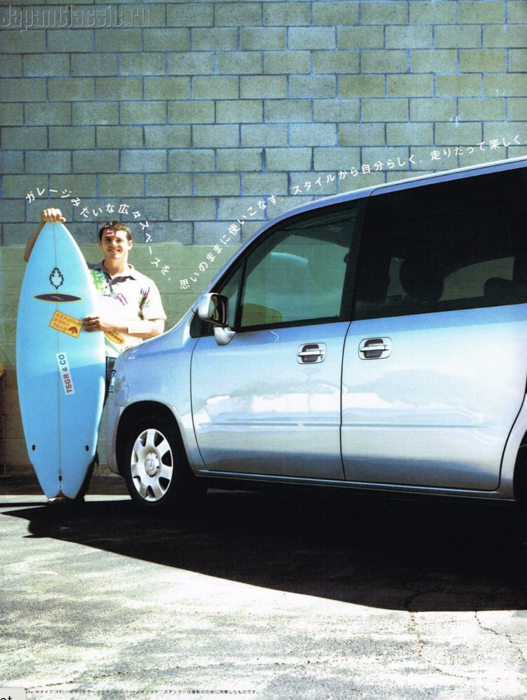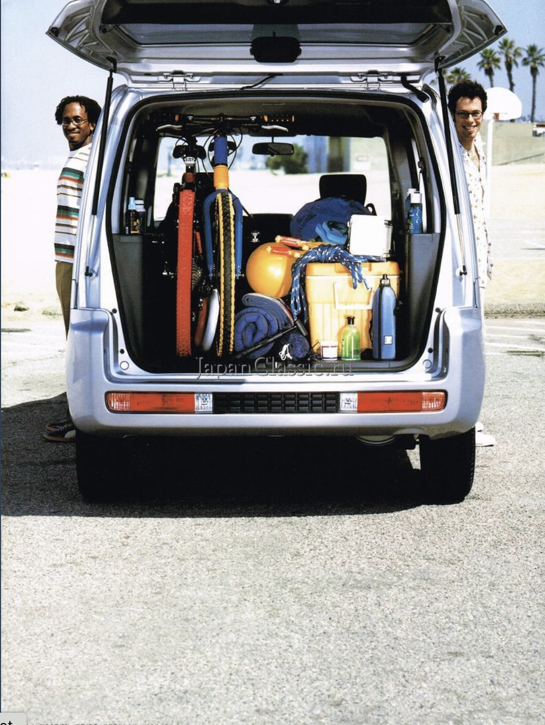 Translation from above: Mobilio Spike's Ultra Cargo that even has a sense of playfulness. A variety of arrangments can be easily and flexibly made according to the play scene. Moreover, the size of the cargo compartment base is at the top level of the class, whether it is in the rear seat storage or in use. It's also good to load a lot of play equipment and go out with your lover [not a lot of private space in Japan! - LR).
