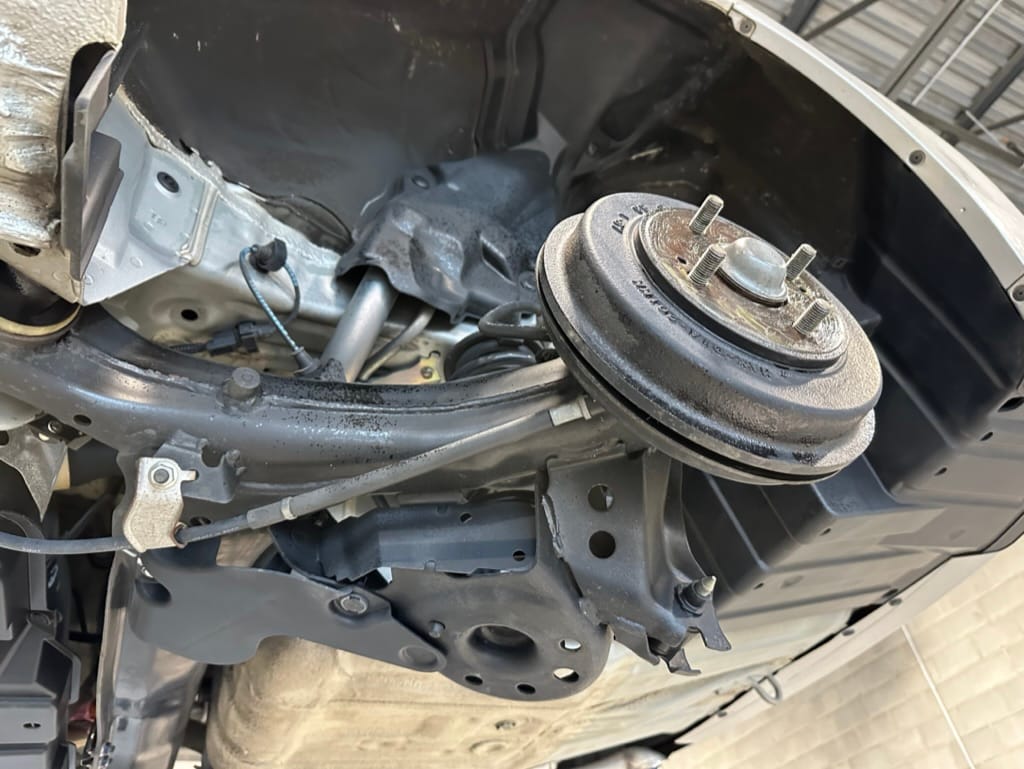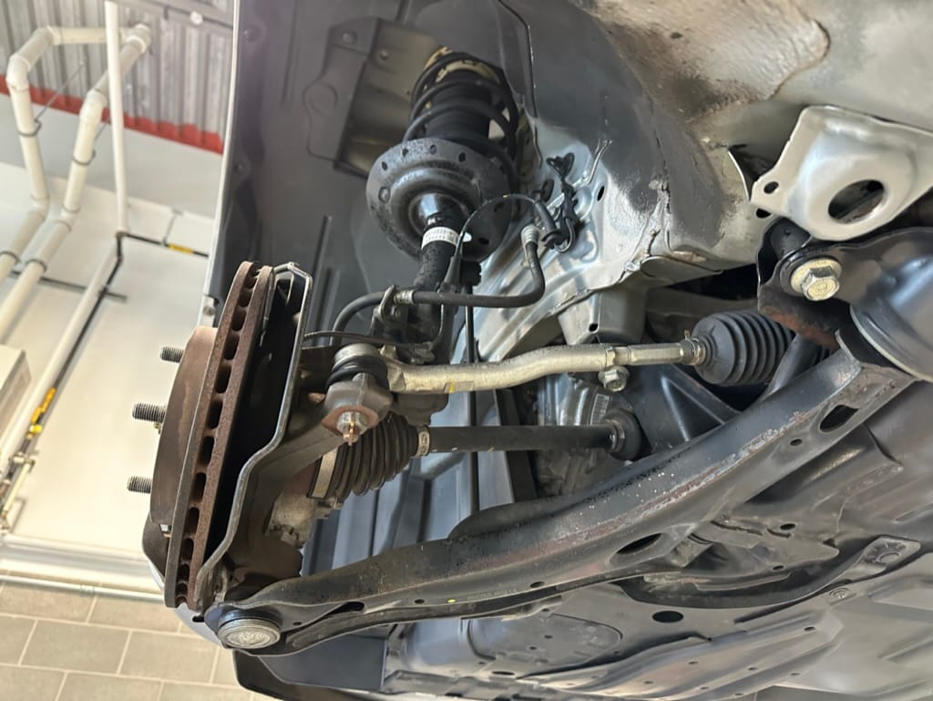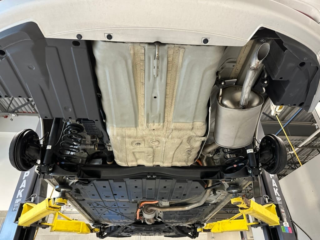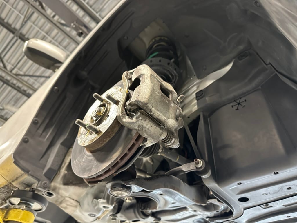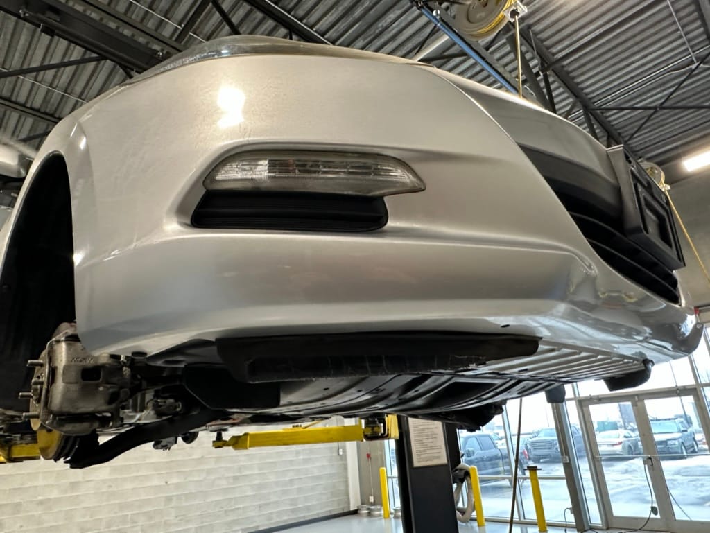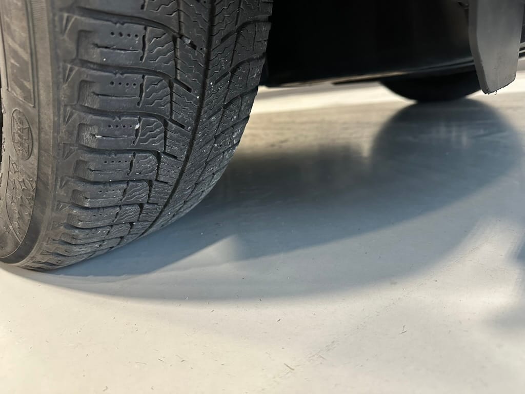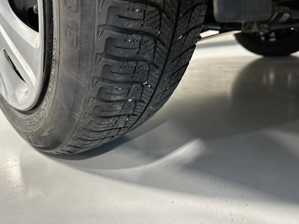 The vehicle comes with two sets of steel rims with both winter and summer tires. The summer rubber looks to have over 80% tread remaining and date codes to 2021, the winter rubber has about 40% tread remaining and date codes to 2016. Front and rear brakes show minimal wear. The windscreen is un-cracked, and the bumpers un-scuffed.