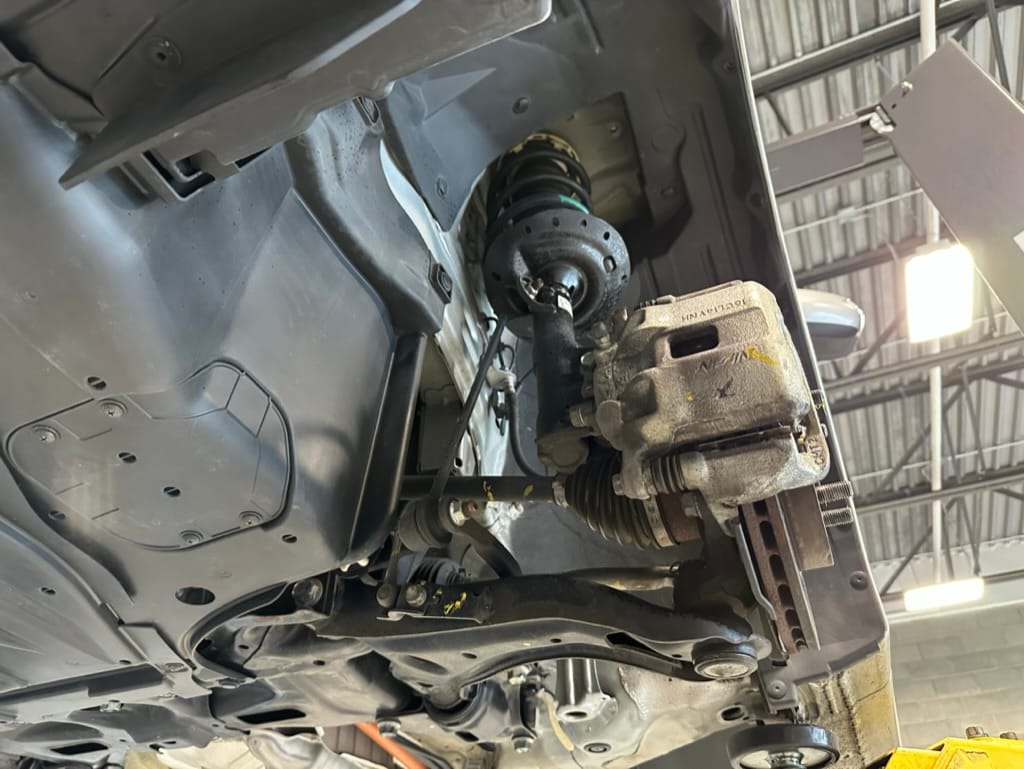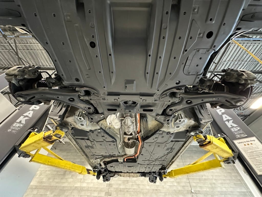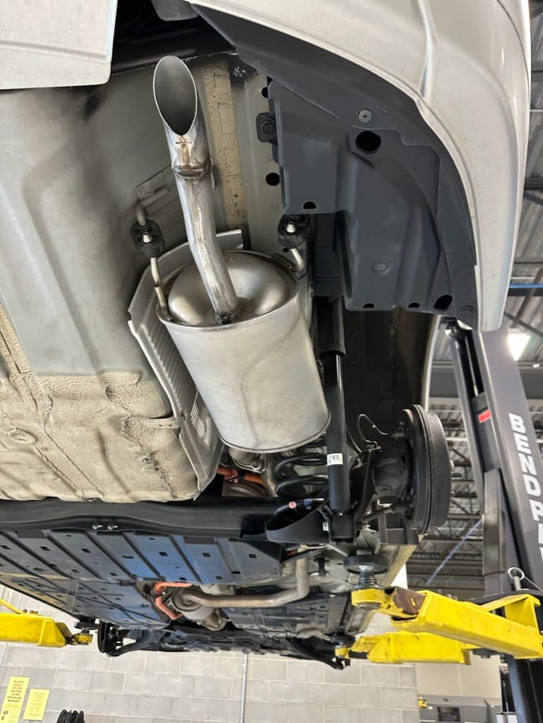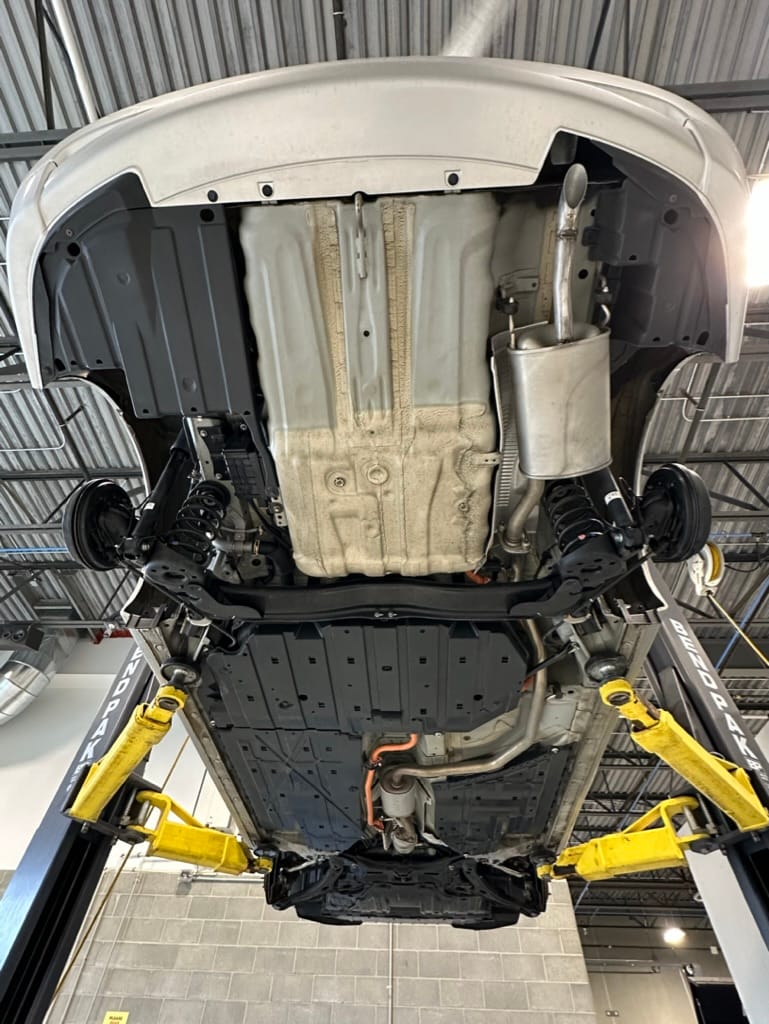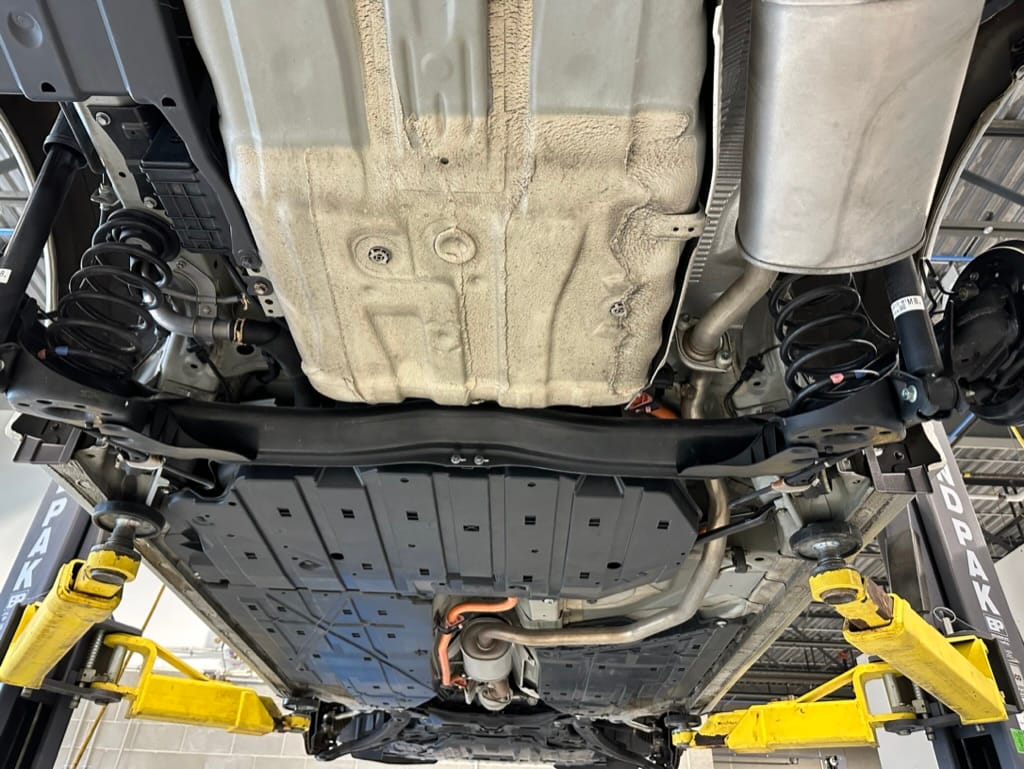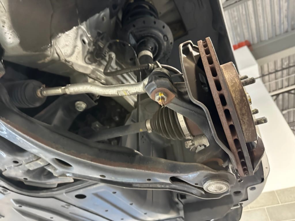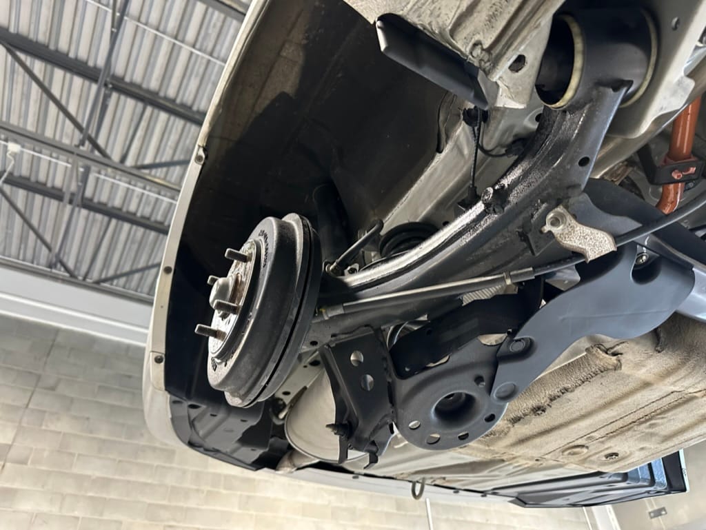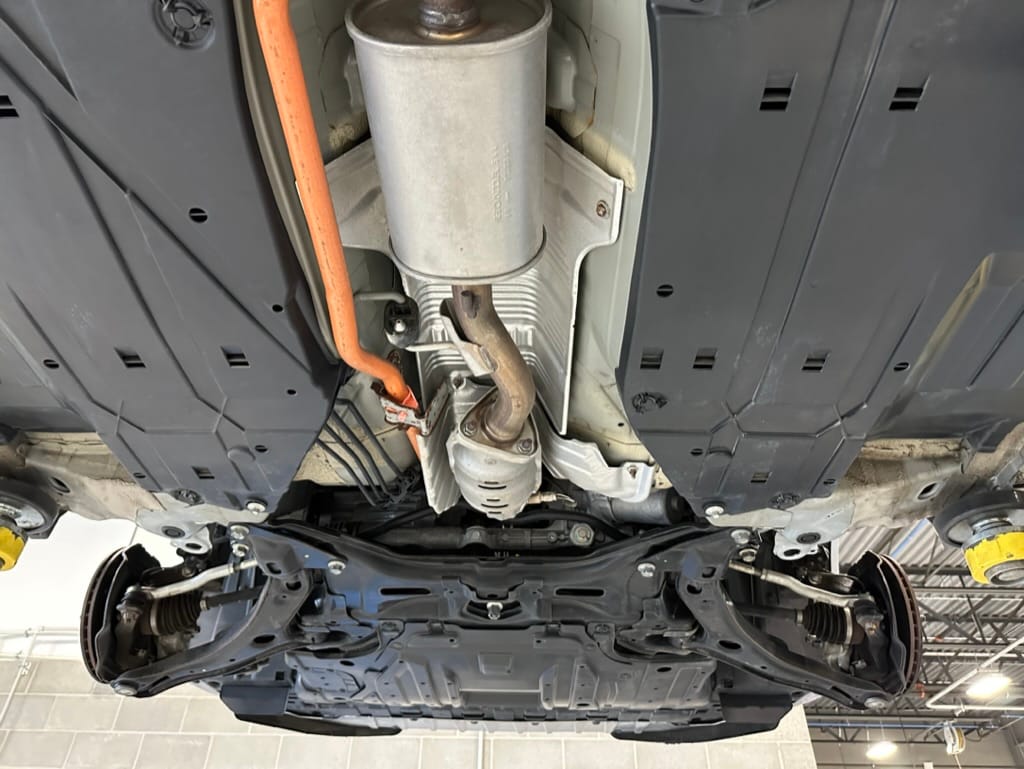 The vehicle comes with two sets of steel rims with both winter and summer tires. The summer rubber looks to have over 80% tread remaining and date codes to 2021, the winter rubber has about 40% tread remaining and date codes to 2016. Front and rear brakes show minimal wear. The windscreen is un-cracked, and the bumpers un-scuffed.