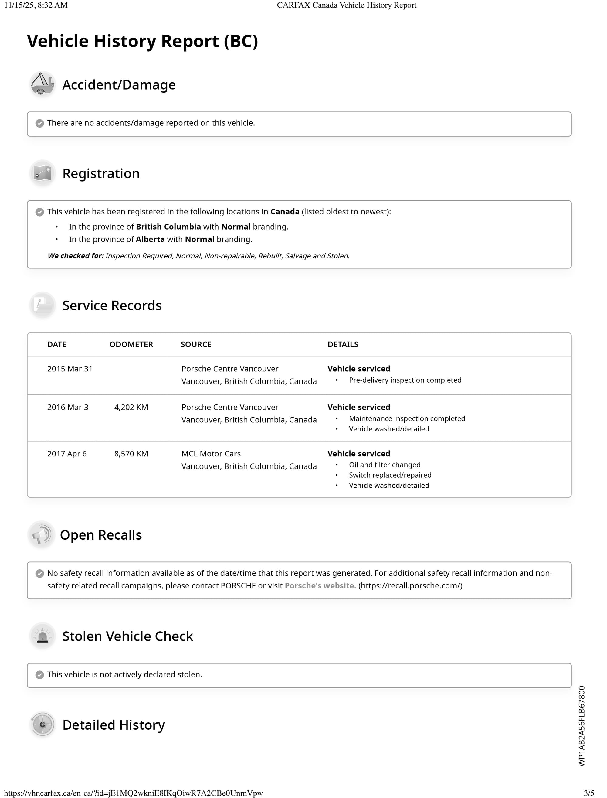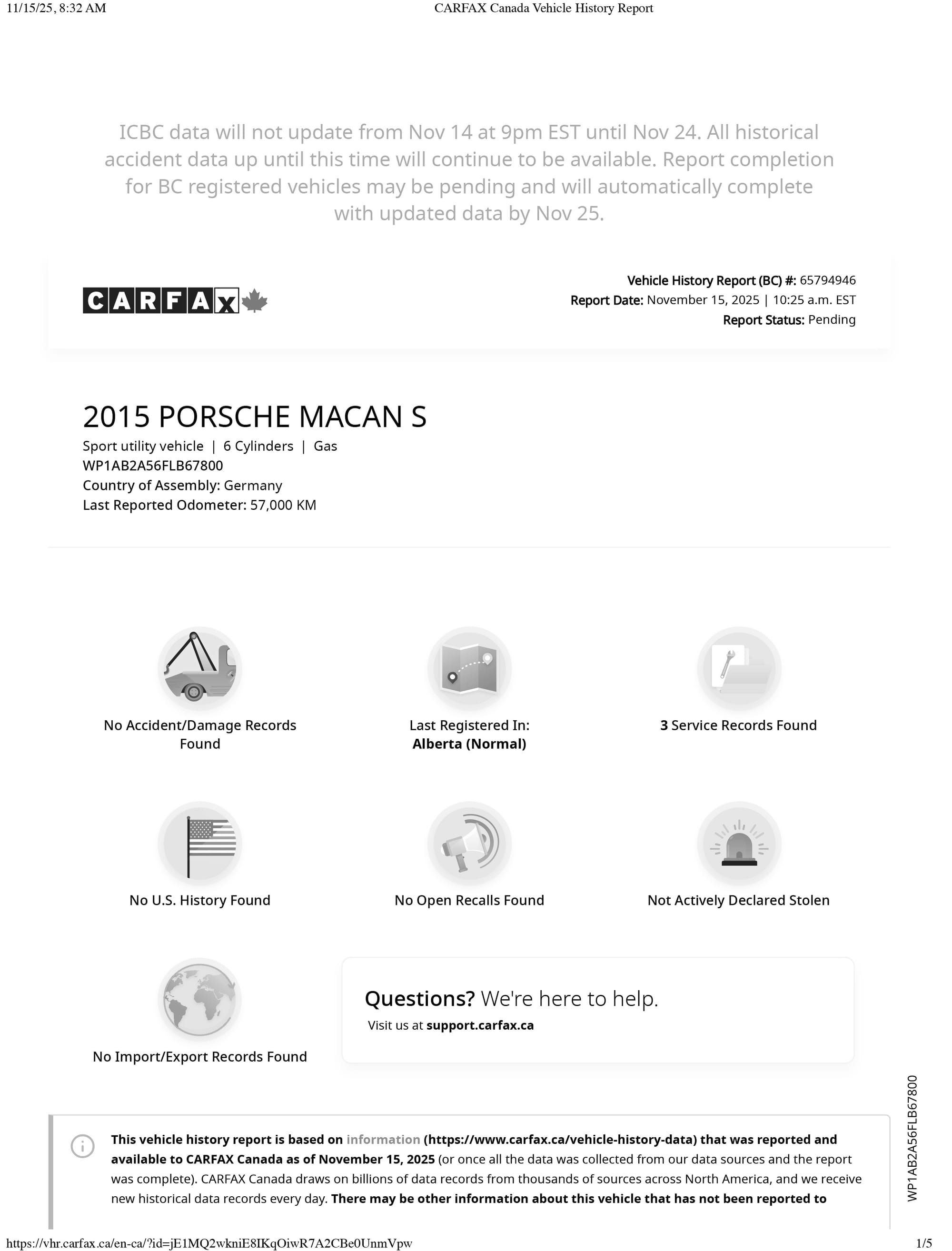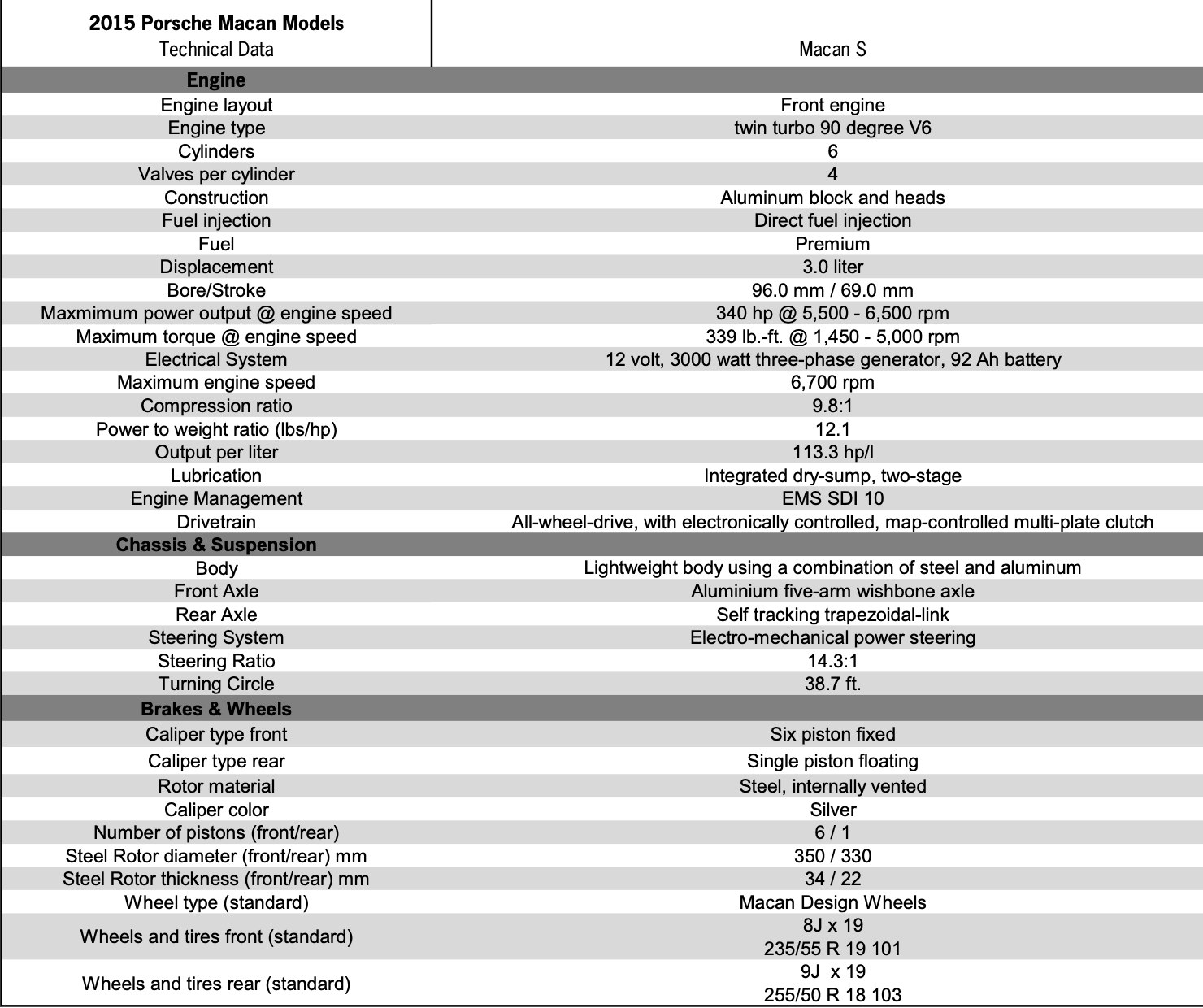 This Porsche Macan was introduced to North American markets in the Spring of 2014 as a 2015 model. This Macan S was sold new at Porsche Centre Vancouver, and went into service March 31, 2015. At this time the demand for the Macan, particularly the 'S', was very strong and customers faced waiting times of greater than one year in many cases.