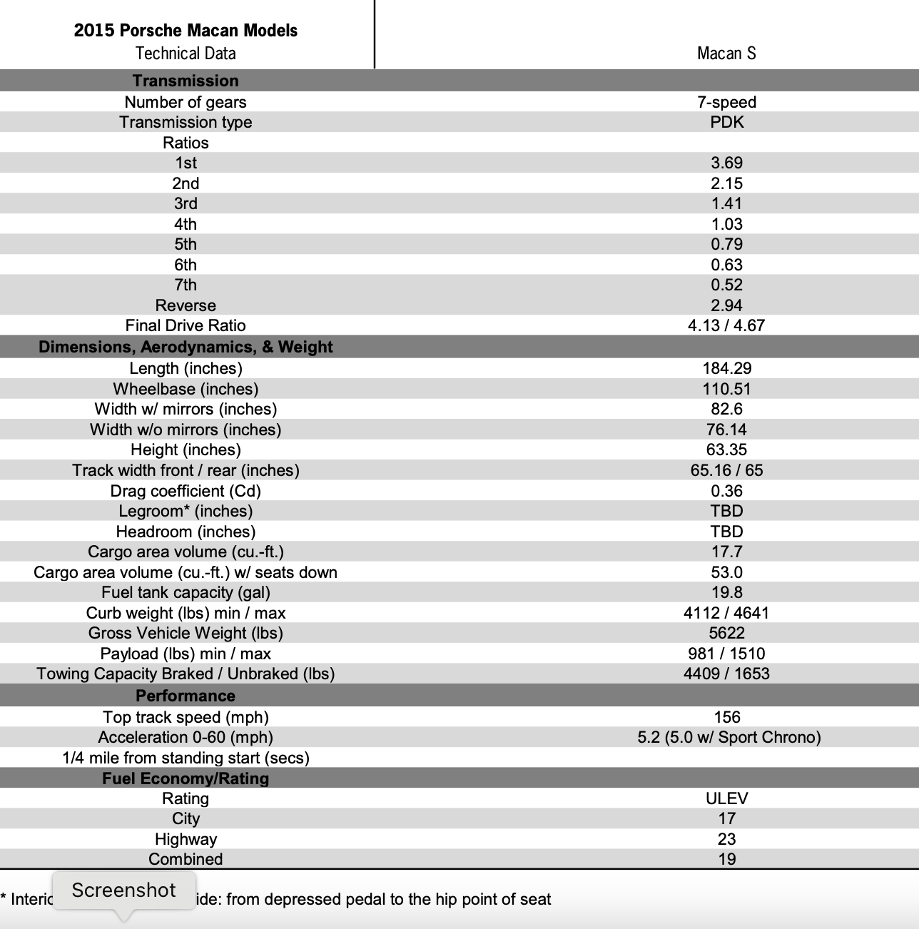 Premium Plus Package: Includes 14 way front seats, heated front and rear seats, ventilated front seats, Blind Spot Assist, Parking Radar, Rear View Camera, Porsche Entry and Drive, Panorama Sunroof, PDLS headlamps. Other options include dashtop compass, 19" alloy wheels, Bose Sound upgrade.