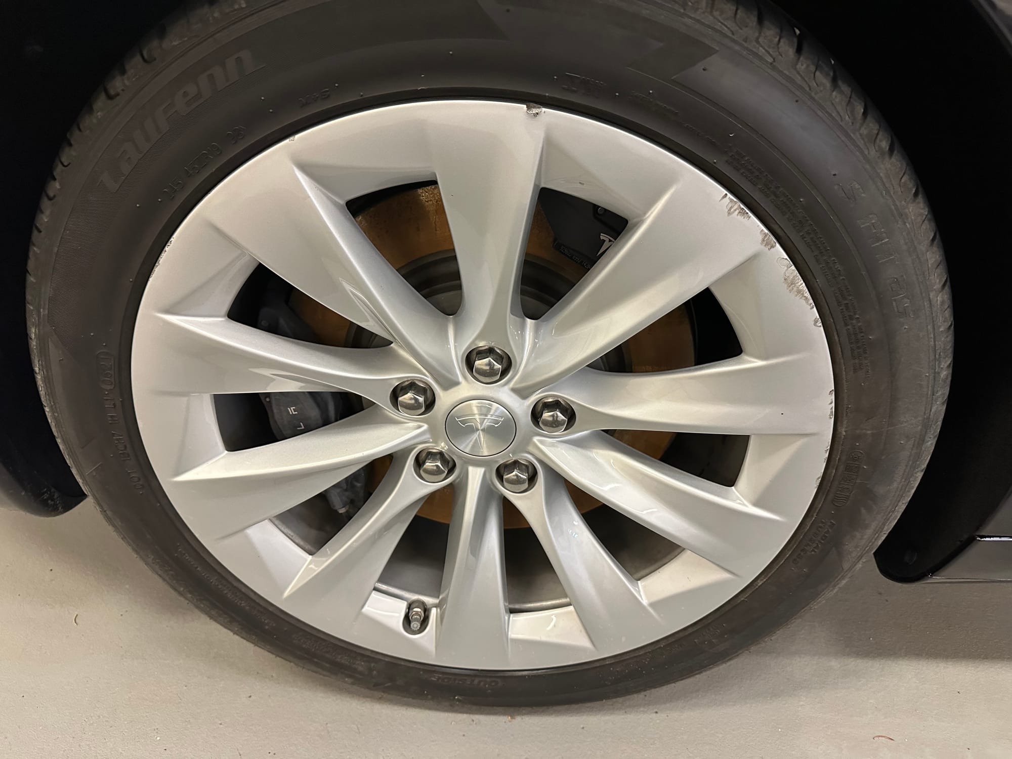 With little over 20,000km this Tesla presents as nearly new. There is some curb rash on 3 of 4 alloy rims, a small chip (but no crack) on the lower windscreen, a rock chip and small dent on the bonnet, a scrape to the lower front bumper cover on the passenger side and only traces of scuffing on a few interior pieces - all photographed. One of the 4 plastic covers for the roof rack mounts is missing.