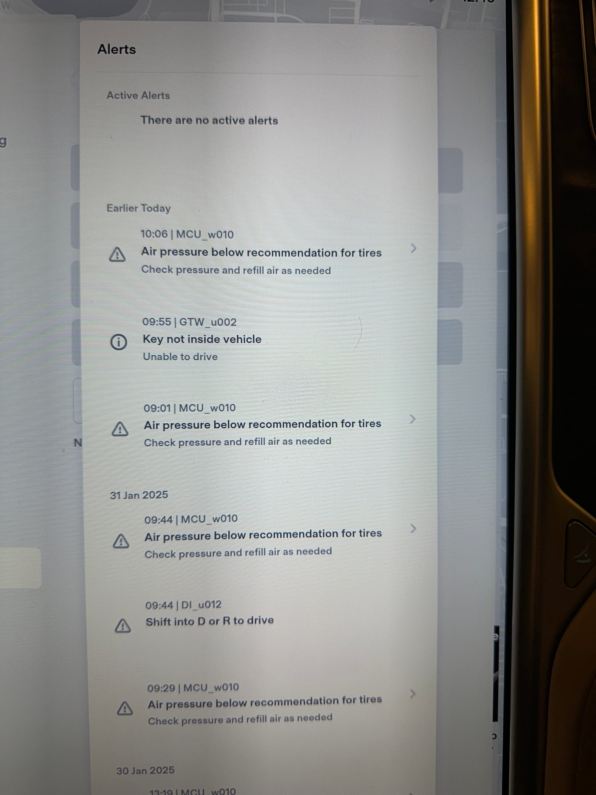 The car has a service history from Tesla Calgary going back to Jan 2020. There are no alerts or messages from the car saying anything is amiss or that any service work is necessary. The air suspension functions properly and the car does not sag, even if left for extended periods.