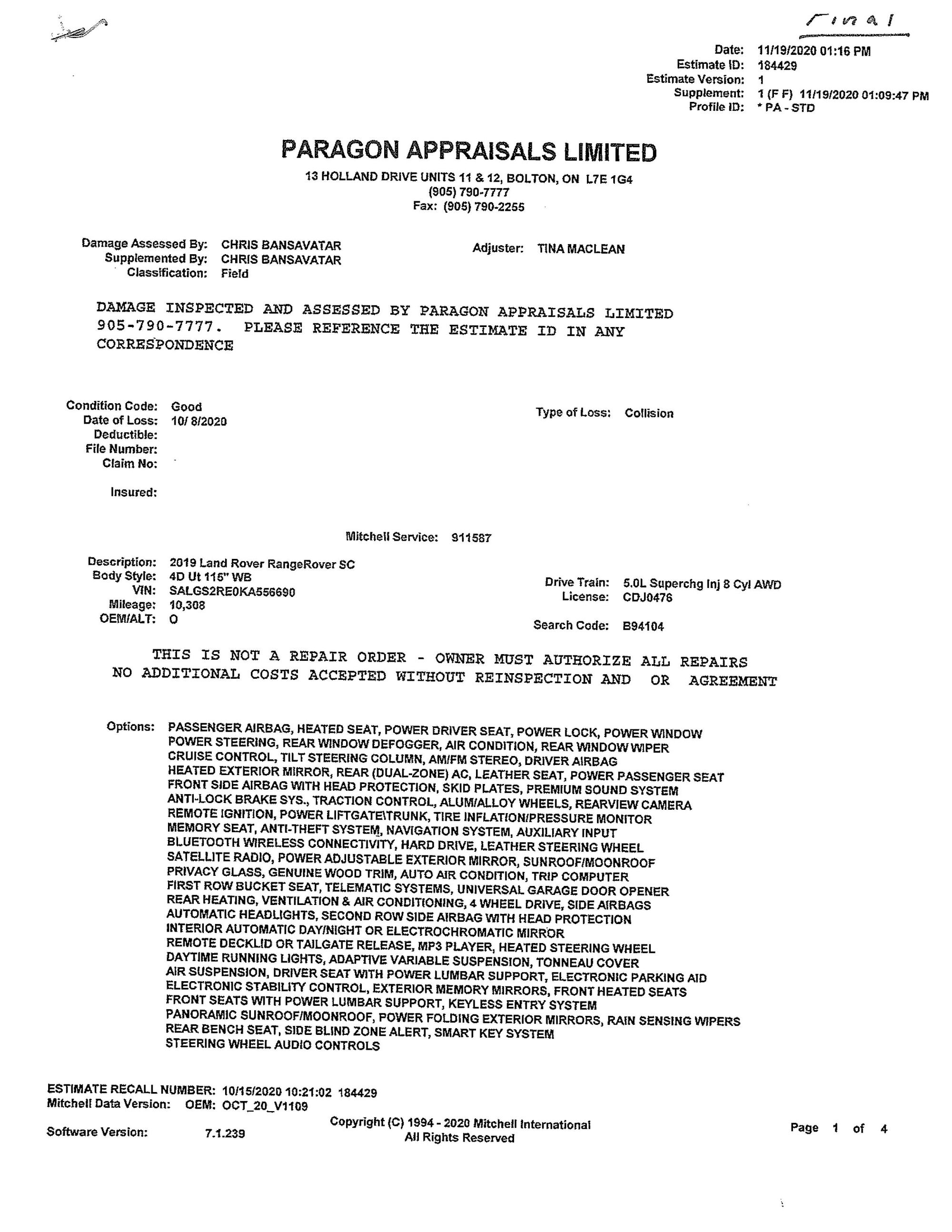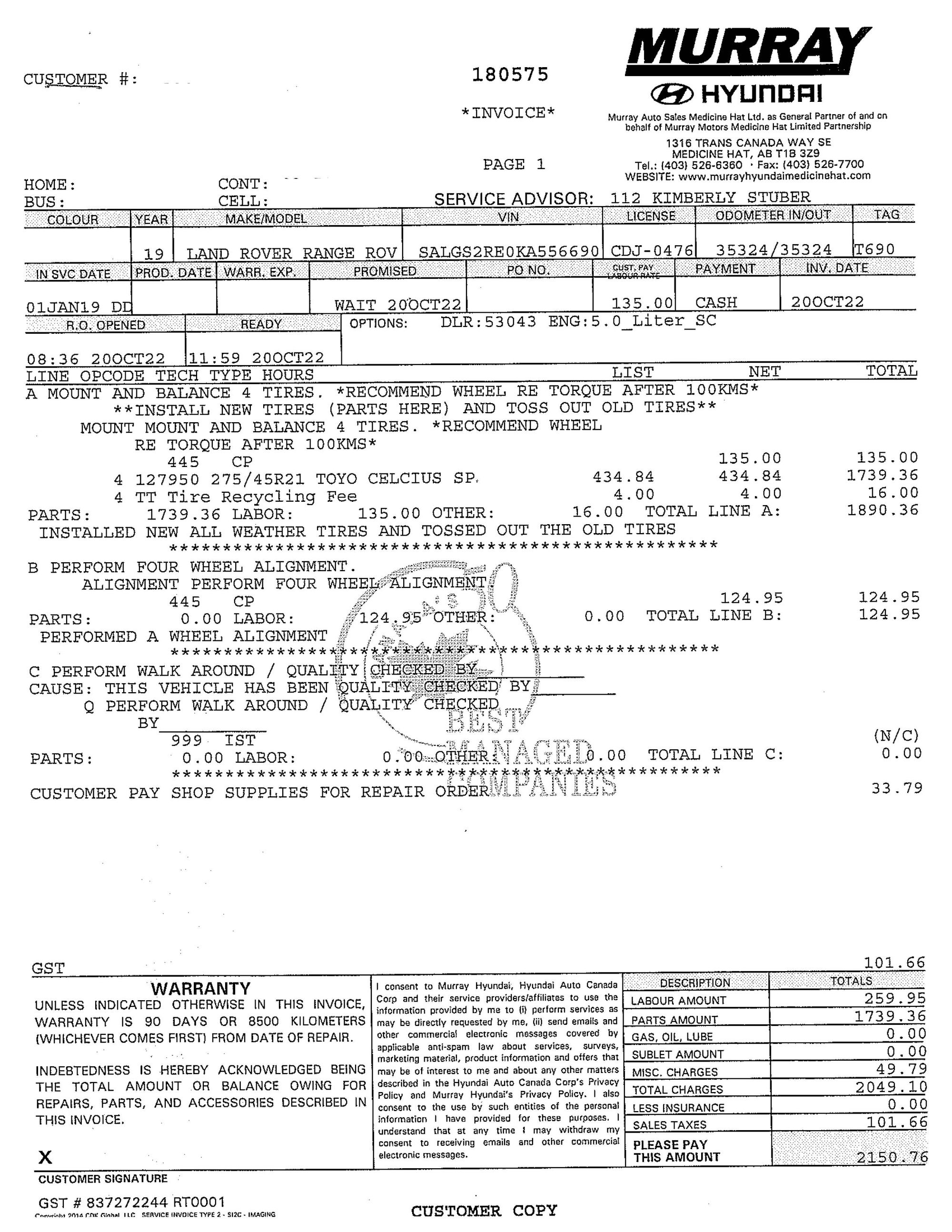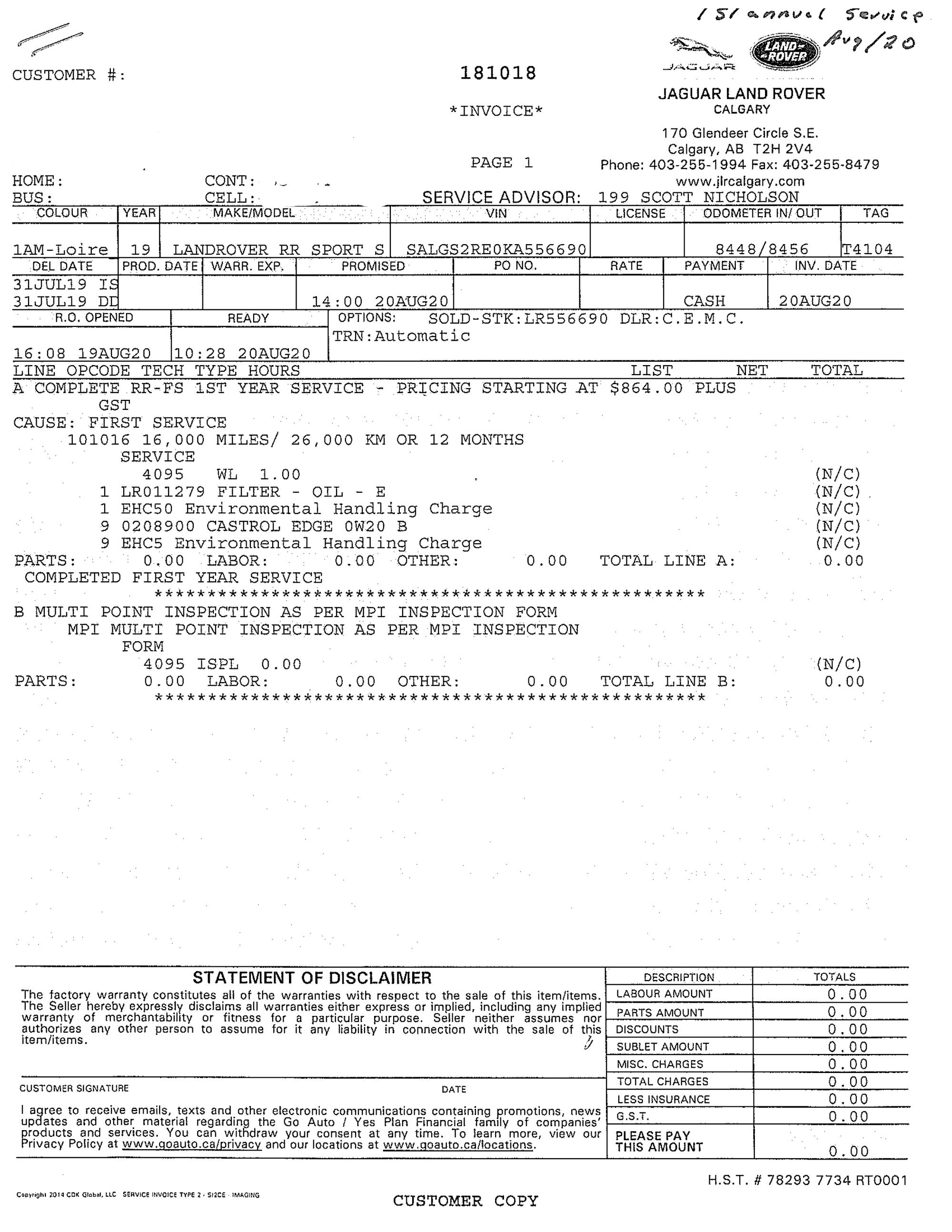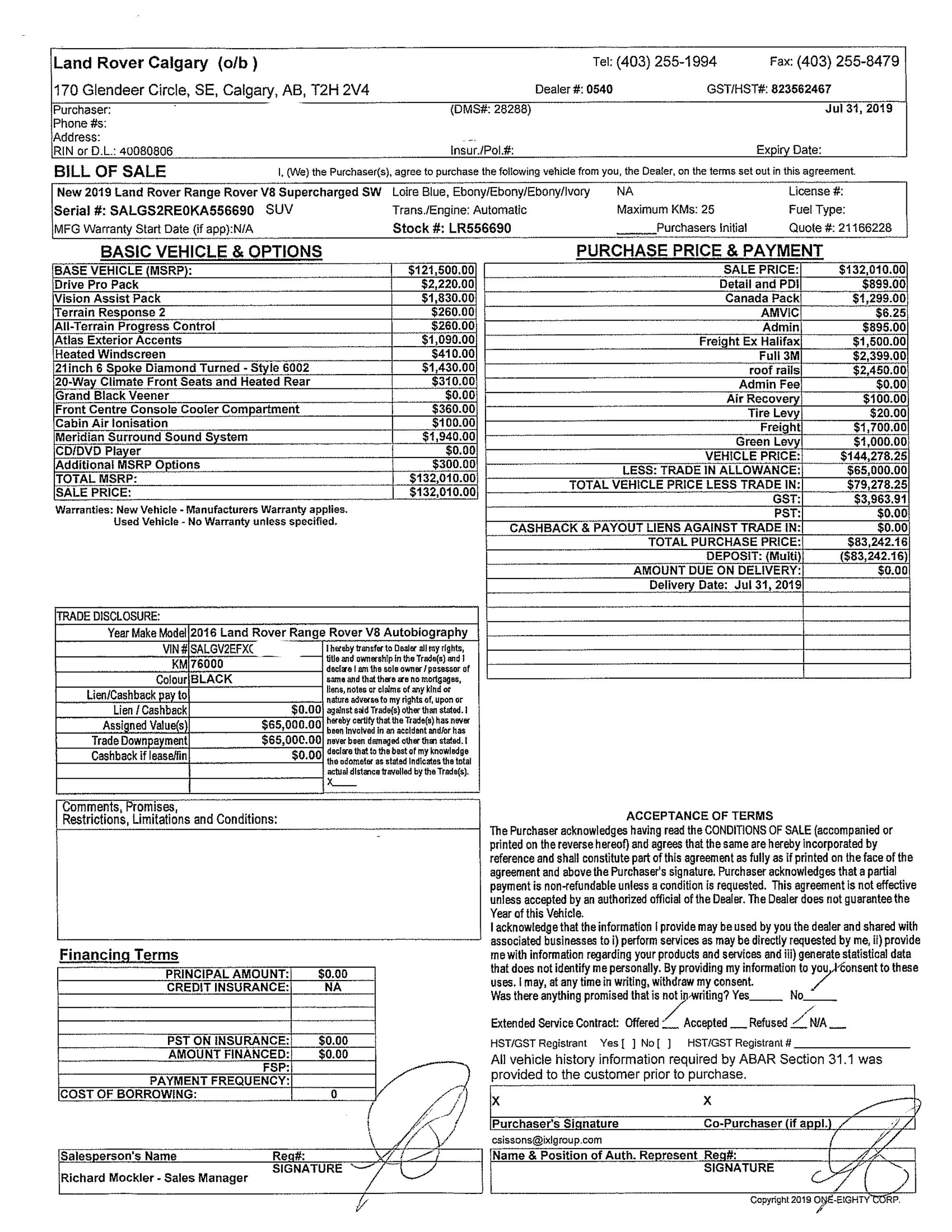 This Land Rover was purchased by a Medicine Hat resident from Calgary Land Rover, and has led an easy life accumulating less than 44,000km since July 2019 when it was delivered. It has required only regular servicing which has been done by Land Rover Calgary and Murray Hyundai in Medicine Hat - who have a dedicated tech who looks after local high end and specialty vehicles. The vehicle has been maintained fully to Land Rover service guidelines. It has full factory warranty until July 31, 2023.