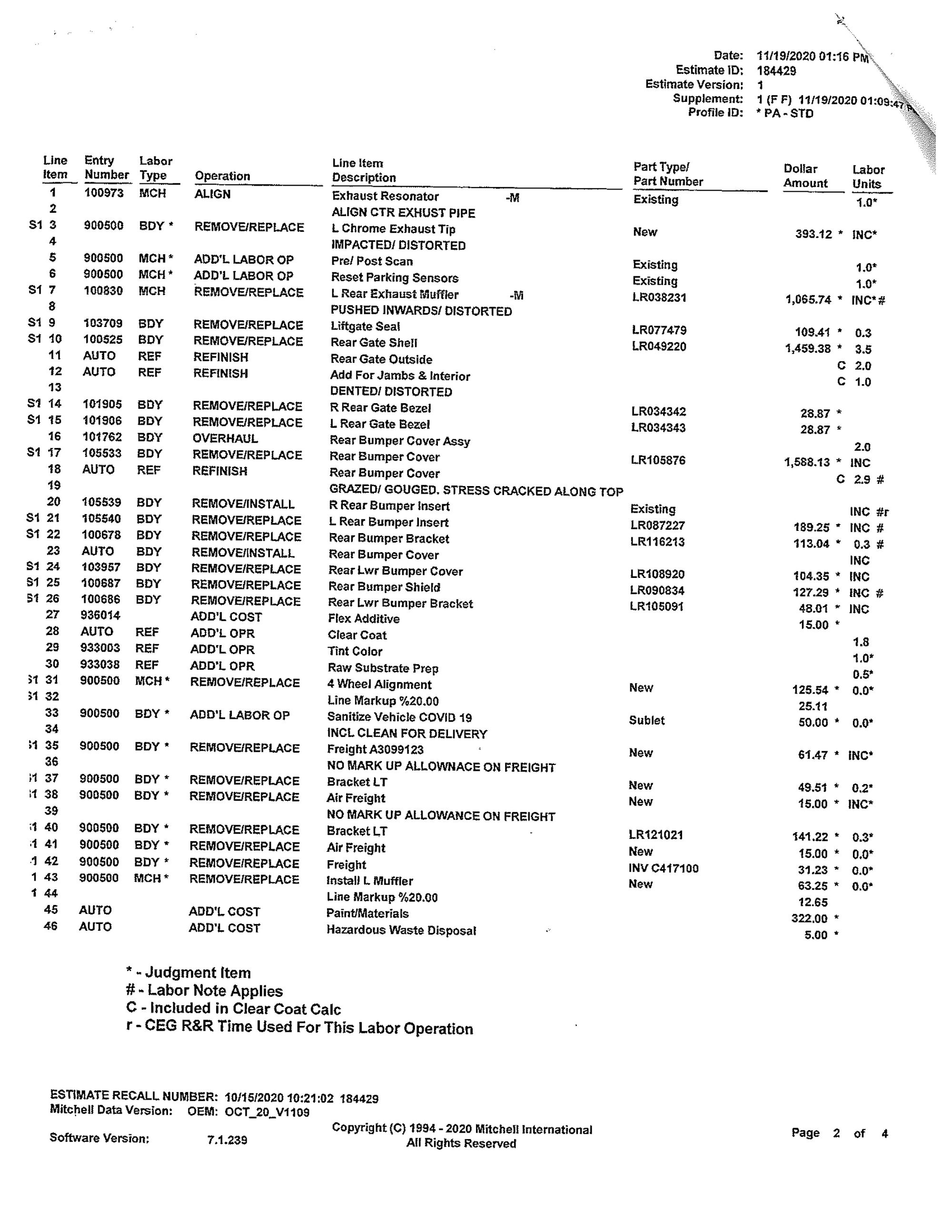 This vehicle was involved in a minor rear end collision which necessitated the replacement of the tailgate, rear bumper cover and muffler. No exterior metal panels were damaged and all retain their original paint. New parts were bolted to the monocoque which was never damaged, and this is evidenced by a letter from the body shop manager of the shop that did the work.