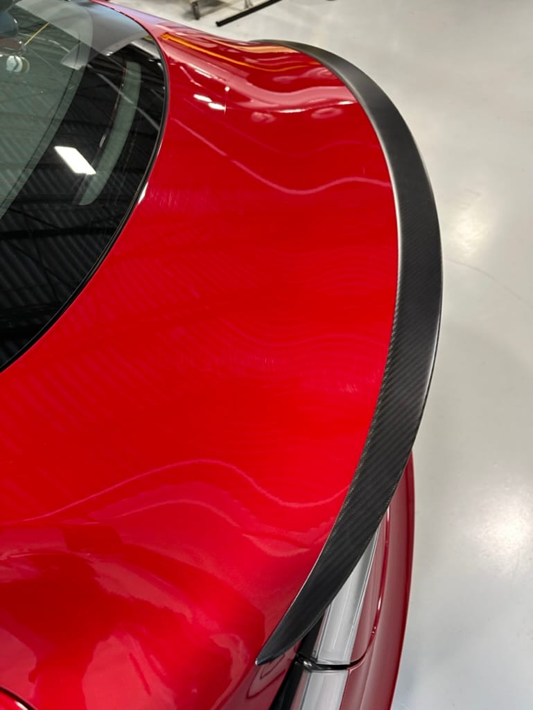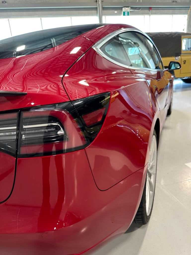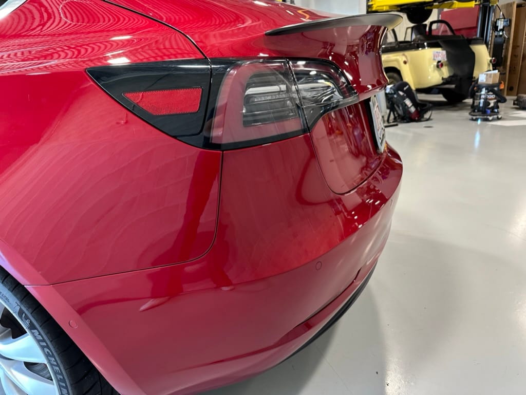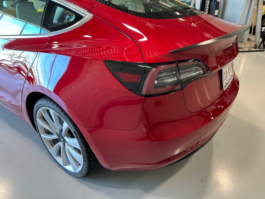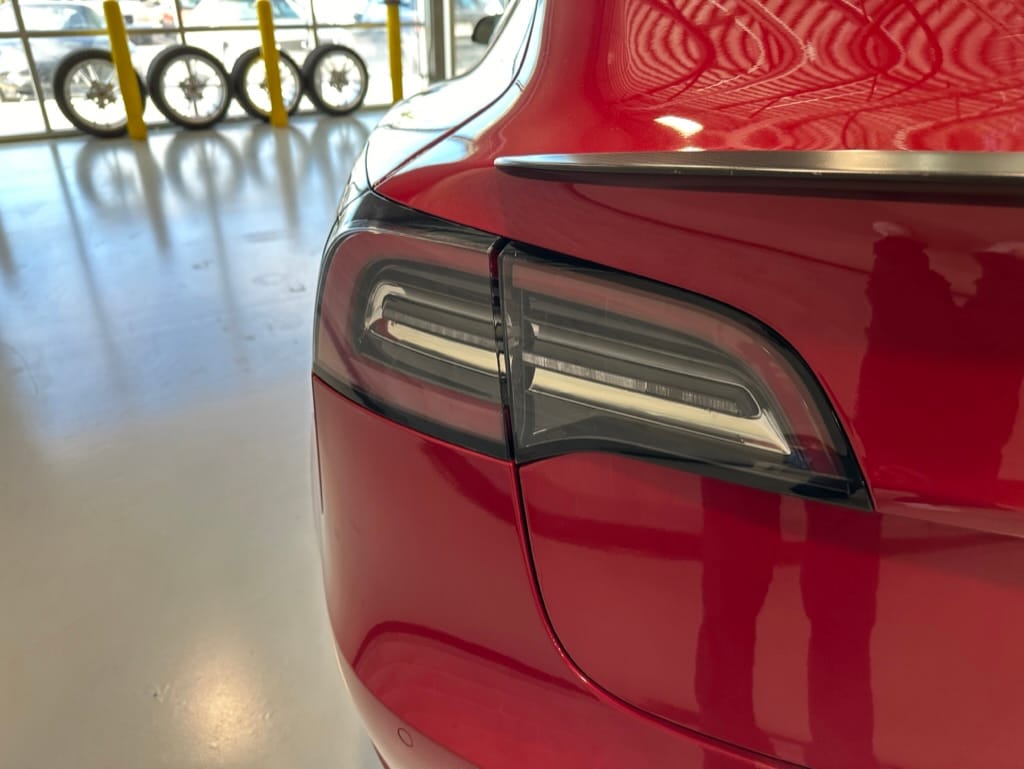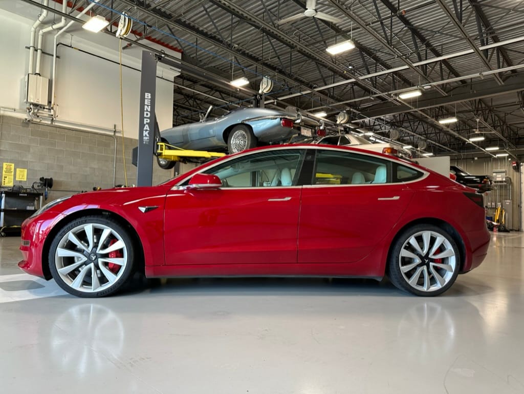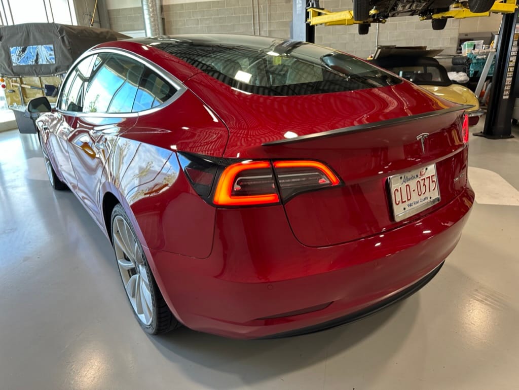 The Performance variant gives you more powerful electric motors on both front and rear axles producing approximately 475hp combined, as well as a battery pack with greater energy density. Acceleration is better than most super sports cars with 0-100km/hr taking just over 3 seconds. The suspension was upgraded, along with brakes which have red painted callipers. The 20" wheels are shod with 235-35-20 performance rubber (Michelin Pilot Sport 4S). The Model 3 performance also has a carbon fiber rear spoiler to reduce lift at high speeds.