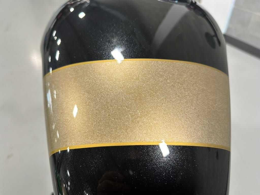 The side panels feature hand-painted gold accents.