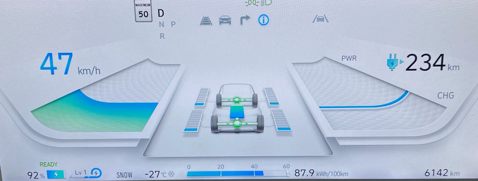 As long as we can charge from home there is no problem. Driving long distances in winter and relying on the DC charging infrastructure is another matter. Our Ioniq may be able to take a DC fast charge of 240kW, but only if it is 30deg C. In very cold weather I would not expect any more than 50kW. If I am using 30kWh/100km to drive, and recharging at 50kW, that would mean that our trip would necessitate more than 1 hour of charging for every 2 hours on the highway - too slow to be practical for us. We would take an ICE or Hybrid car for the few times a year we travel longer distances.