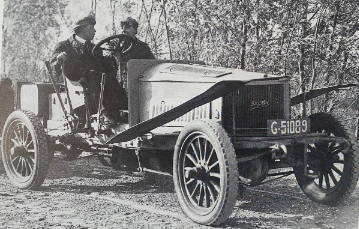 The Lohner-Porsche pictured above features four hub-mounted wheel motors giving all wheel drive. The occupants are sitting on a large battery pack that was suspended from the chassis with coil springs to protect its fragile electric cells. This was one of Porsche's first racers, but with a weight of over four tons it was too heavy for the pneumatic tires of the day.