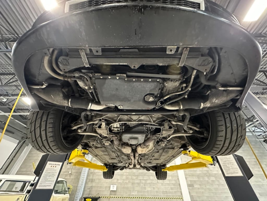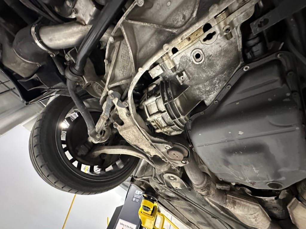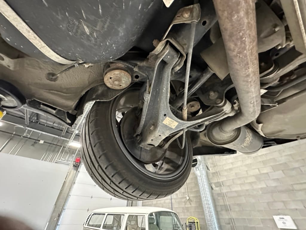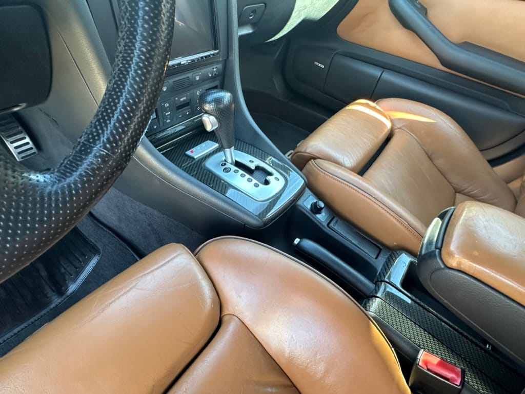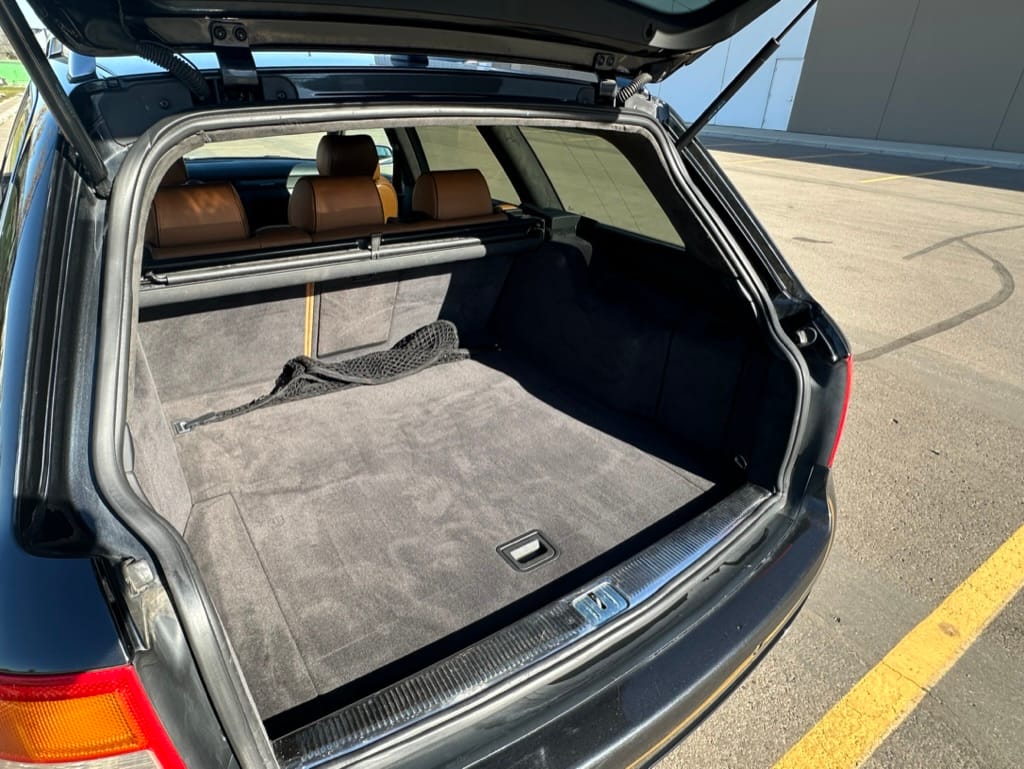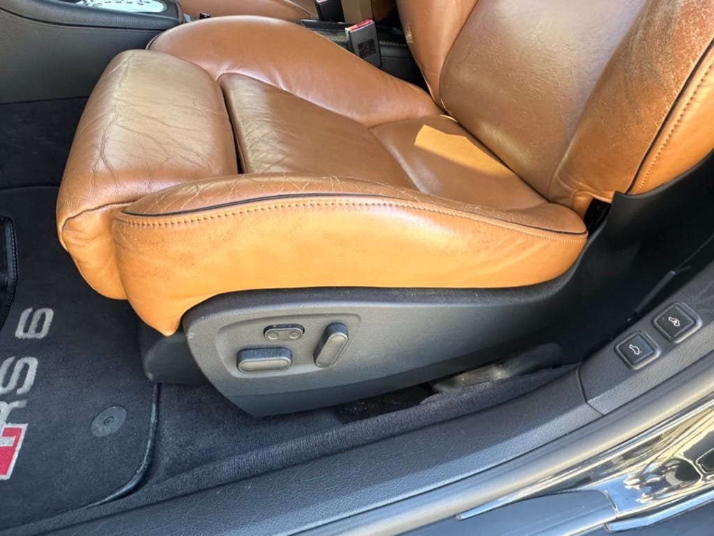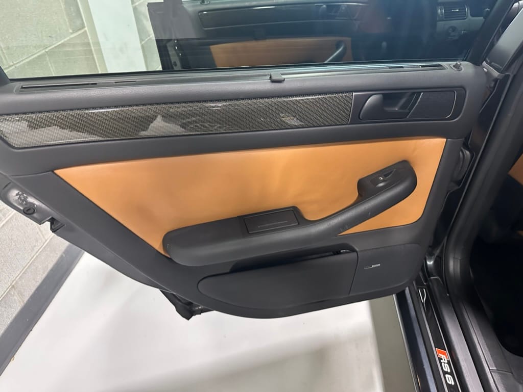 Built by then-Audi-owned Cosworth Technology, the 4.2-liter V8 engine is based on that of the standard RS6, but with bespoke BorgWarner K04 twin turbochargers, side-mounted intercoolers, auxiliary radiators, optimized combustion chambers, ported heads, and a refined piston crown design. Producing up to 473 HP and 428 lb-ft of torque, the engine is paired with a 5-speed Tiptronic automatic transmission and a Quattro all-wheel drive system with a torque-sensing center differential. The RS6 Plus comes with a quicker steering ratio than a standard RS6 and features sport-tuned Dynamic Ride Control (DRC) suspension. Stopping is handled by massive 8-piston Brembo brakes with cross-drilled floating discs in front and single-piston calipers with cross-drilled discs at the rear. Service completed in 2021 at 177k kilometers included a new water pump, timing belts, cam tensioner seals, intake manifold gaskets, a left-front CV joint, transmission service, a rebuilt transmission cooler, a power steering and brake fluid flush, new rear differential fluid, and an oil change.