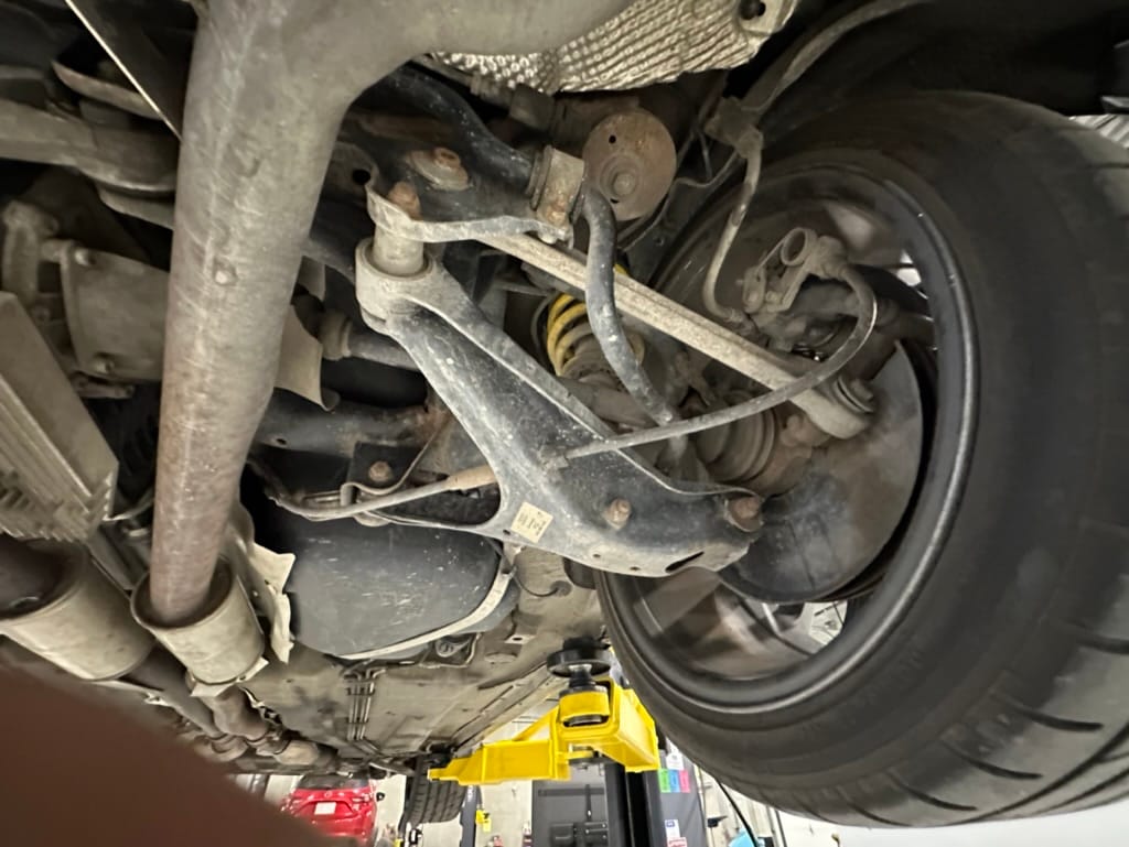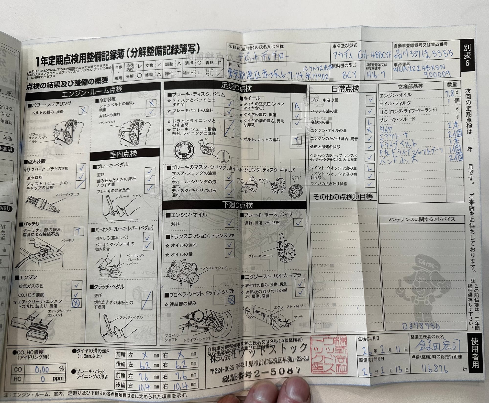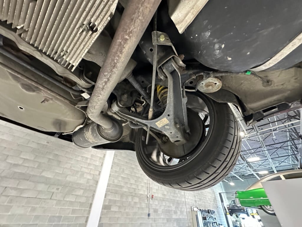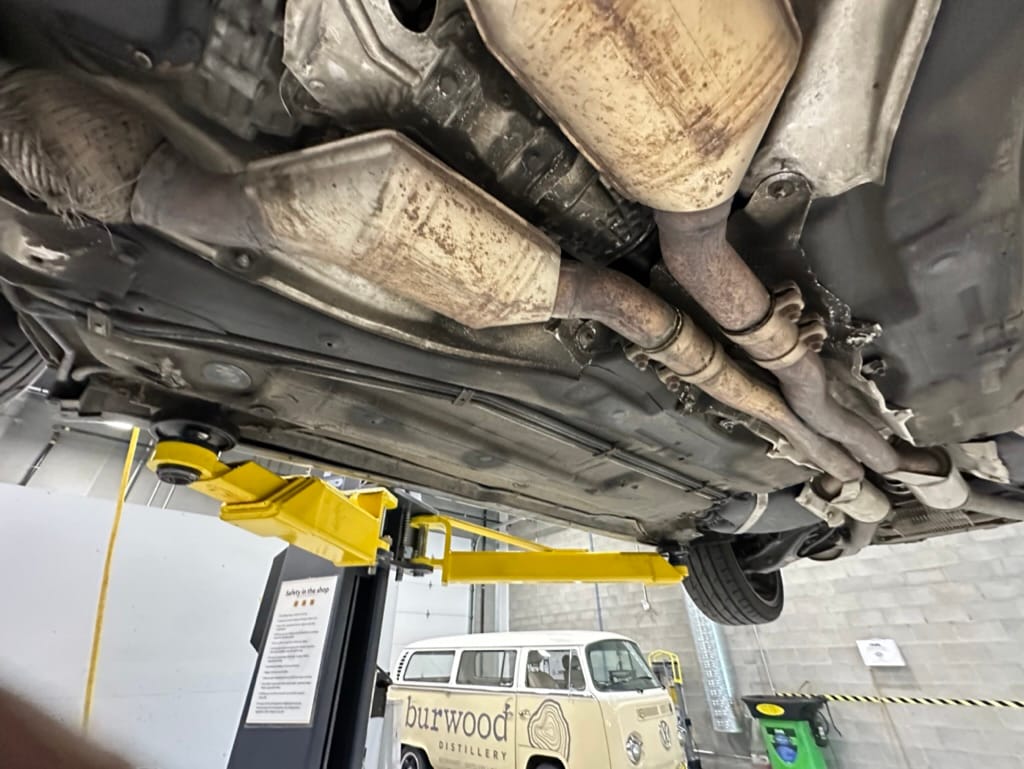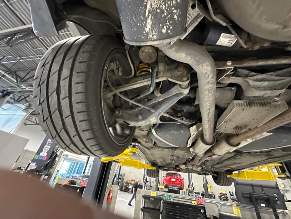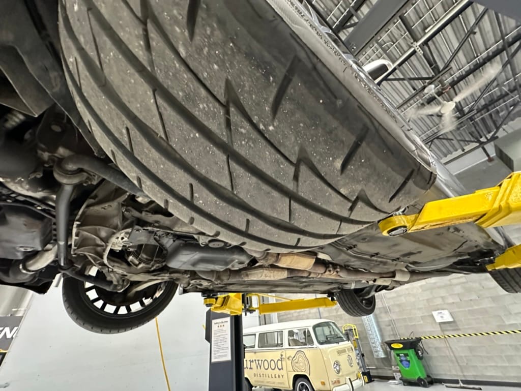 Built by then-Audi-owned Cosworth Technology, the 4.2-liter V8 engine is based on that of the standard RS6, but with bespoke BorgWarner K04 twin turbochargers, side-mounted intercoolers, auxiliary radiators, optimized combustion chambers, ported heads, and a refined piston crown design. Producing up to 473 HP and 428 lb-ft of torque, the engine is paired with a 5-speed Tiptronic automatic transmission and a Quattro all-wheel drive system with a torque-sensing center differential. The RS6 Plus comes with a quicker steering ratio than a standard RS6 and features sport-tuned Dynamic Ride Control (DRC) suspension. Stopping is handled by massive 8-piston Brembo brakes with cross-drilled floating discs in front and single-piston calipers with cross-drilled discs at the rear. Service completed in 2021 at 177k kilometers included a new water pump, timing belts, cam tensioner seals, intake manifold gaskets, a left-front CV joint, transmission service, a rebuilt transmission cooler, a power steering and brake fluid flush, new rear differential fluid, and an oil change.